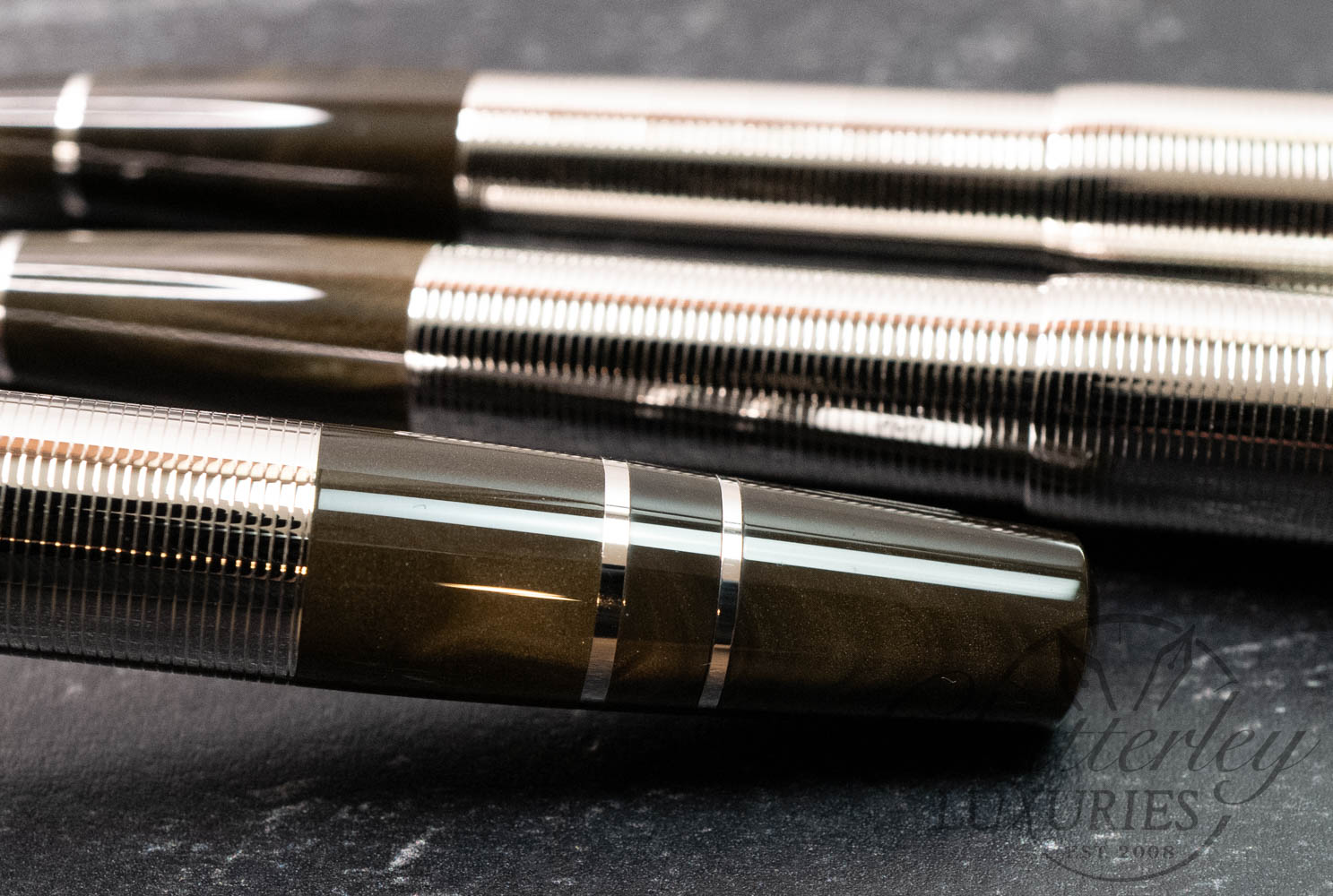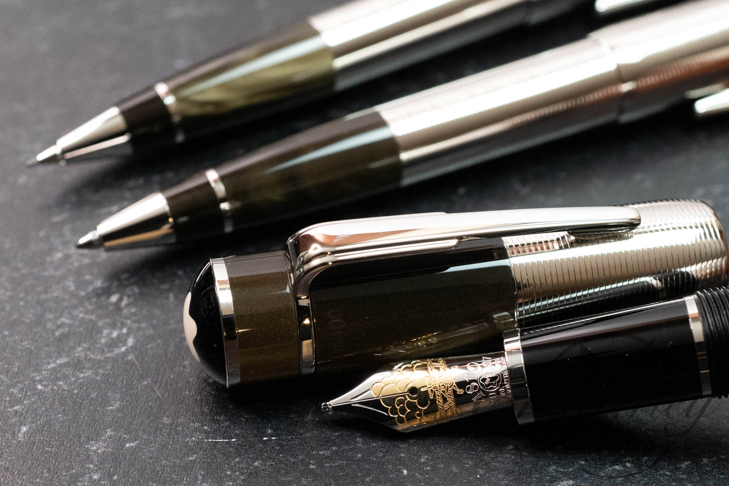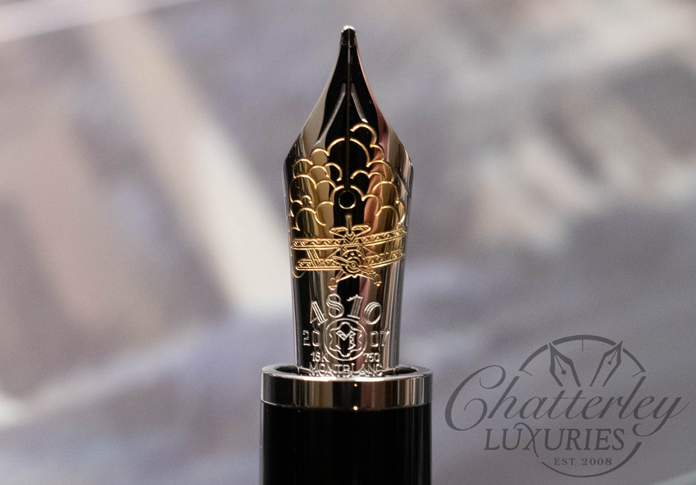 - Hand-crafted platinum-plated 18-K gold nib
