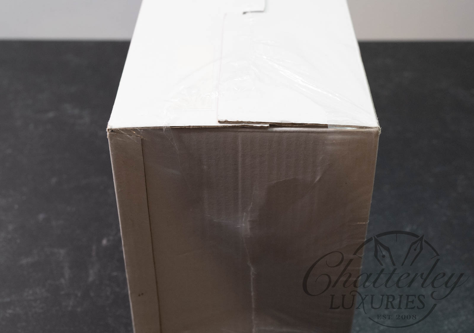 This pen set is a New Old Stock set that has never been opened, it is still sealed. It is equipped with an 18k Medium Nib Fountain pen, Ballpoint pen and Mechanical pencil. The fountain pen fills via a Piston Filler system. There is a small tear in the outer plastic wrap on one side of the packaging.