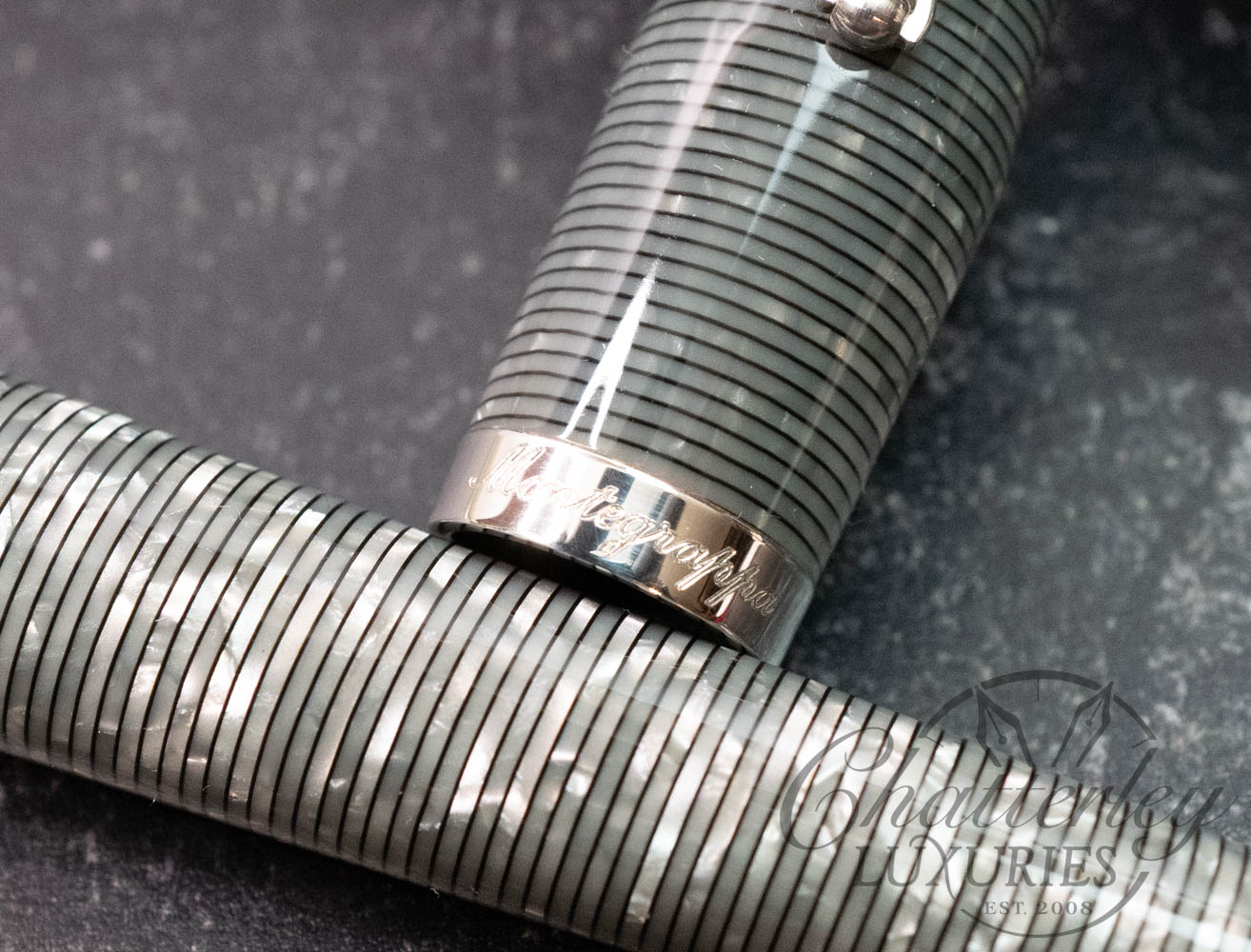 - Made of precious grey celluloid in a circumferential stripe