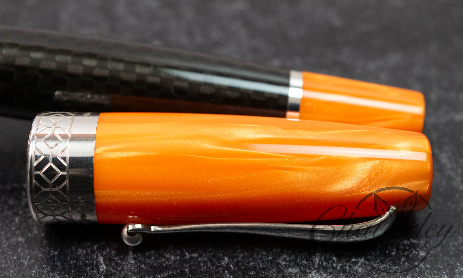 A pen with an original yet timeless design of daring rounded lines, Montegrappa’s Miya has always been a delight for the eyes and a joy to hold. Complementing the original Miya, made in precious celluloid with sterling silver trims, Miya Carbon is a new interpretation with carbon fibre barrel. To provide a visual contrast, Miya Carbon is available with its celluloid cap and end-piece in a choice of three colours: black, orange and yellow.