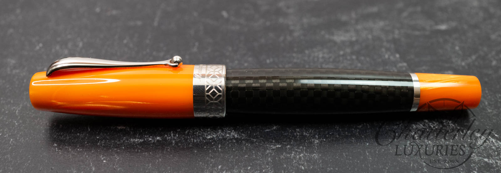 If ever a pen could be described as ‘sporty’, it is Montegrappa’s Miya Carbon. Its form is modern, sculpted, functional – and it is as dashing as an Italian roadster with its top down. Now, the automotive analogy goes a stage further, with the addition of a carbon fibre element.