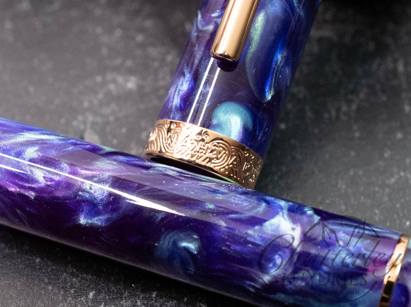 Nature Collection: Aurora Polaris Inspired by the vibrant colors found in nature, the Aurora Polaris pen showcases swirling shades of purple, blue, and green, resembling the vibrant Northern Lights. This pen is part of the Nature Collection, which upholds Nahvalur’s heritage with features such as an ink window, piston-filling mechanism, and our in-house stainless steel nibs.