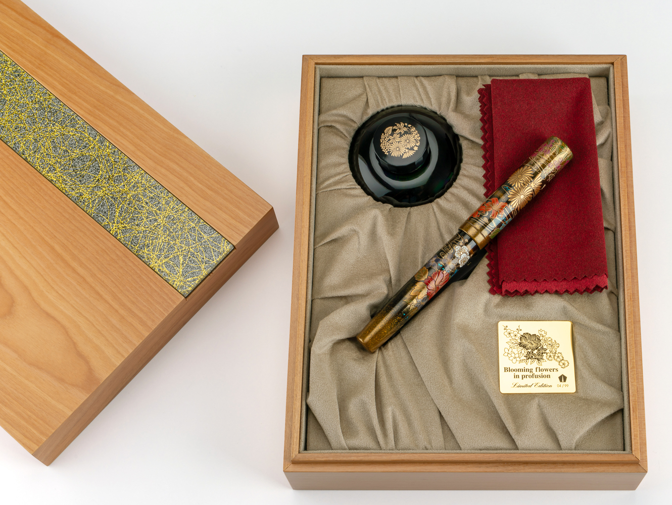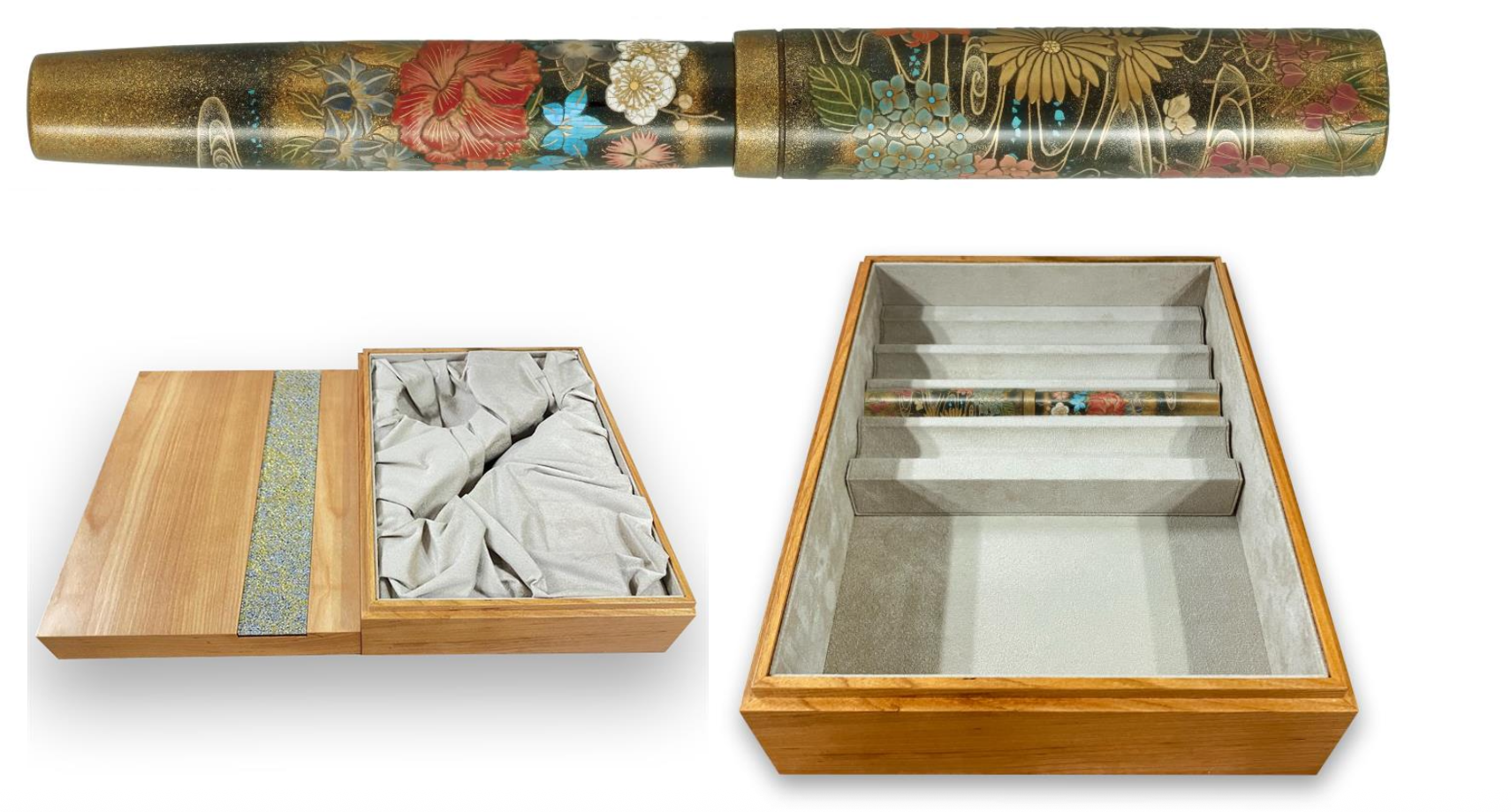 Each Blooming Flowers in Profusion fountain pen is housed in a specially designed wooden gift box with a tray for four additional Emperors. Included: