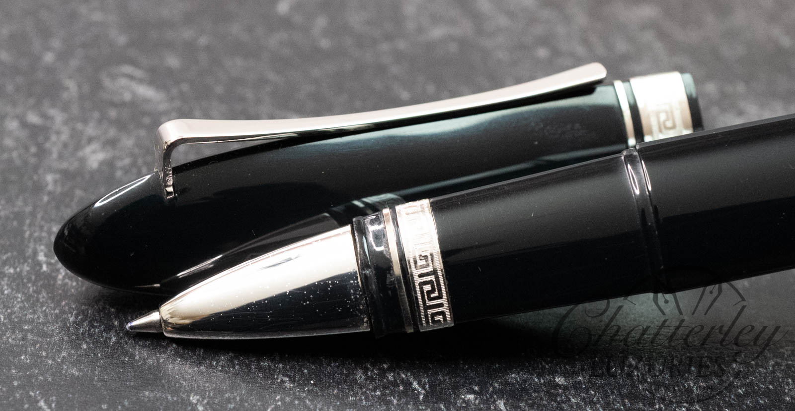 This pen has seen regular use and shows noticeable wear throughout, with clear signs of handling and surface wear. It does not come with a box or papers and will need a refill. The end of the pen has what looks like glue (see last image).