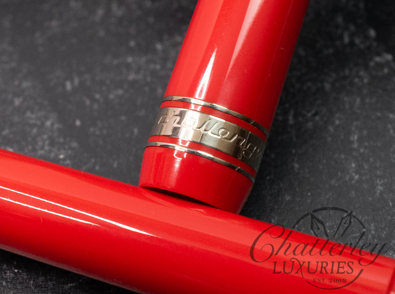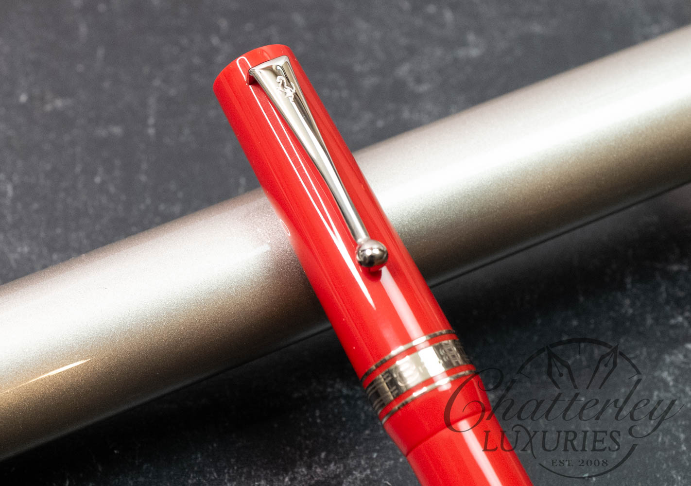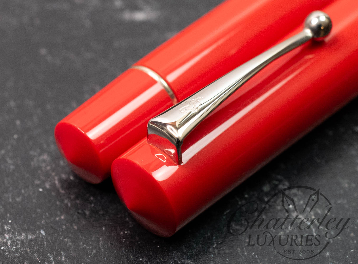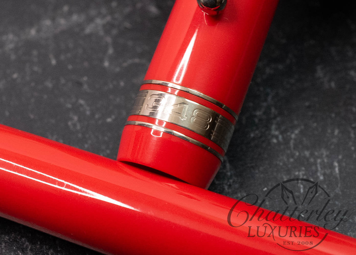 Omas first released this limited edition in 1994, almost 20 years ago, it was made by Ferrari for Omas. This pen is piston filled and has an 18kt Gold nib. The material of the pen is resin, a very rich red color.