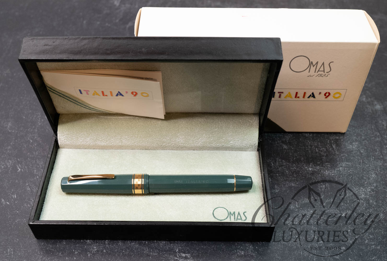 This Vintage Omas Italia 90 Special Edition Fountain Pen was designed to commemorate the World Cup Championships held in Italy. Â This series is one of the first special edition pens produced by OMAS. These pens were extremely limited to collectors and were mainly given to World Cup Officials and players in token of appreciation.
