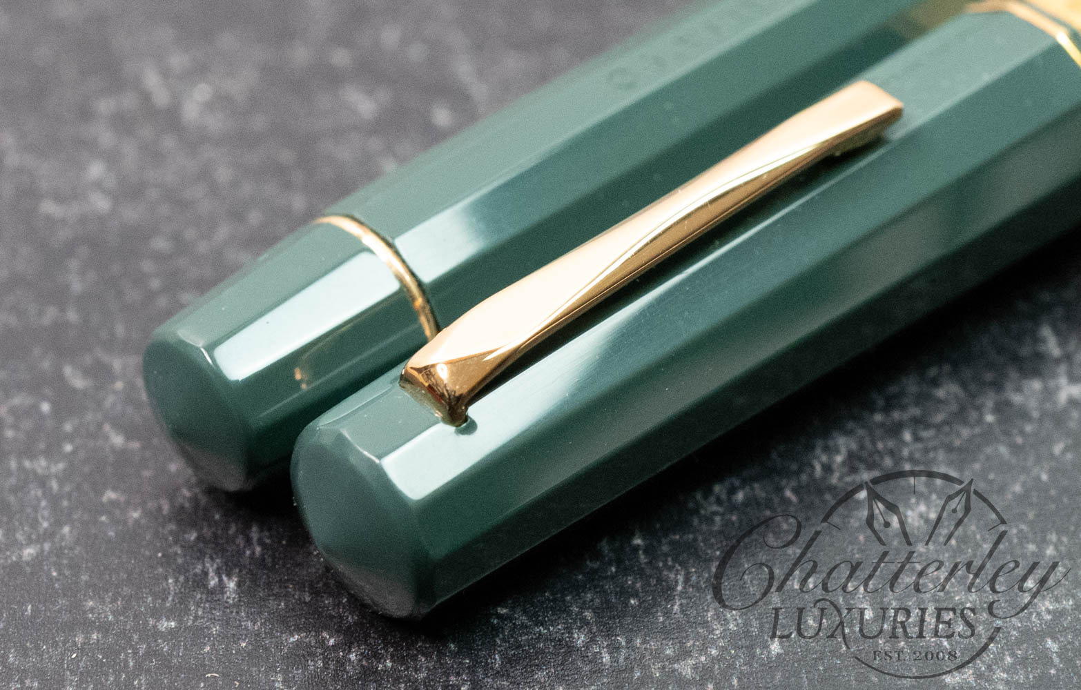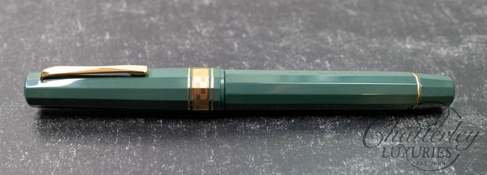 This pen is lovingly used and comes complete with the box and papers. It is equipped with an 18k Fine nib and fills via a Piston Filling System. The nib is not the original ’90 Commemorative nib that came with the pen, but instead has the nib from the Omas Ferrari 348 Challenge Fountain Pen (the Ferrari horse icon).