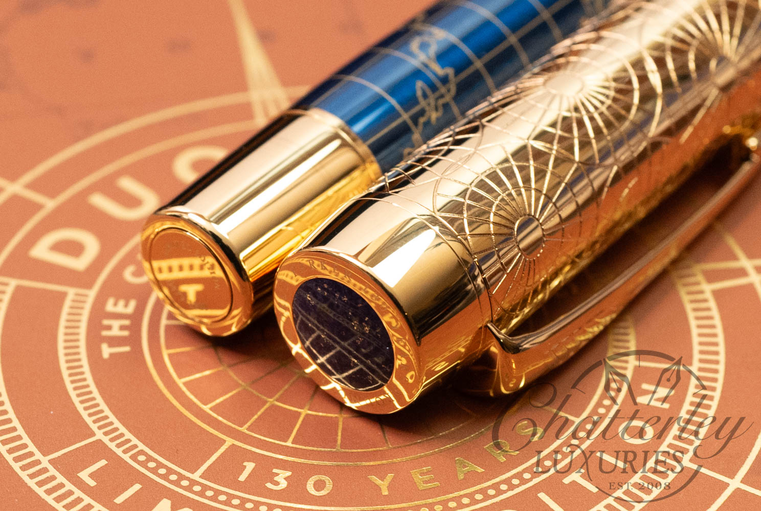 Each of the 1,300 pens is a unique masterpiece that has been manually handcrafted to be truly one-of-a-kind. This uniqueness can be seen in the color variation on the body of the pens, in the lasered golden lines, and the lapis lazuli on the caps. There are no two identical pieces, with each individual Duofold engraved with its own specific number. Cartridge/converter fill.