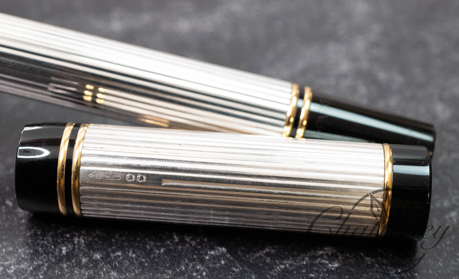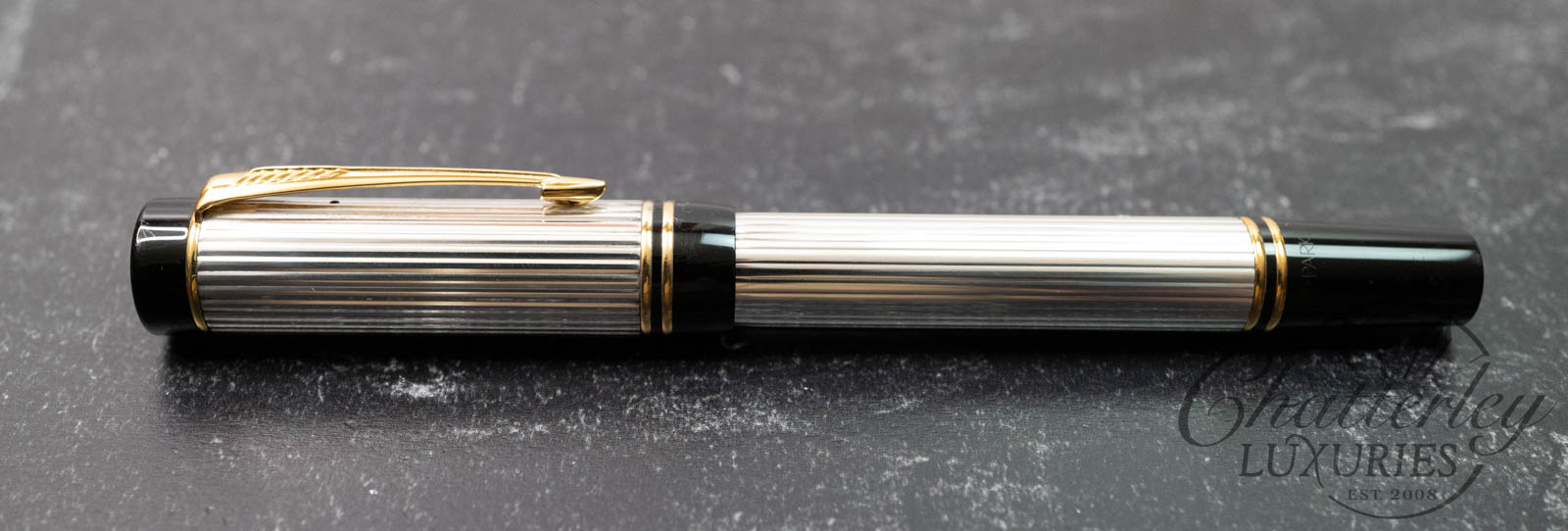 This pen is lovingly used and does not come with a box or papers. It is equipped with a working refill.