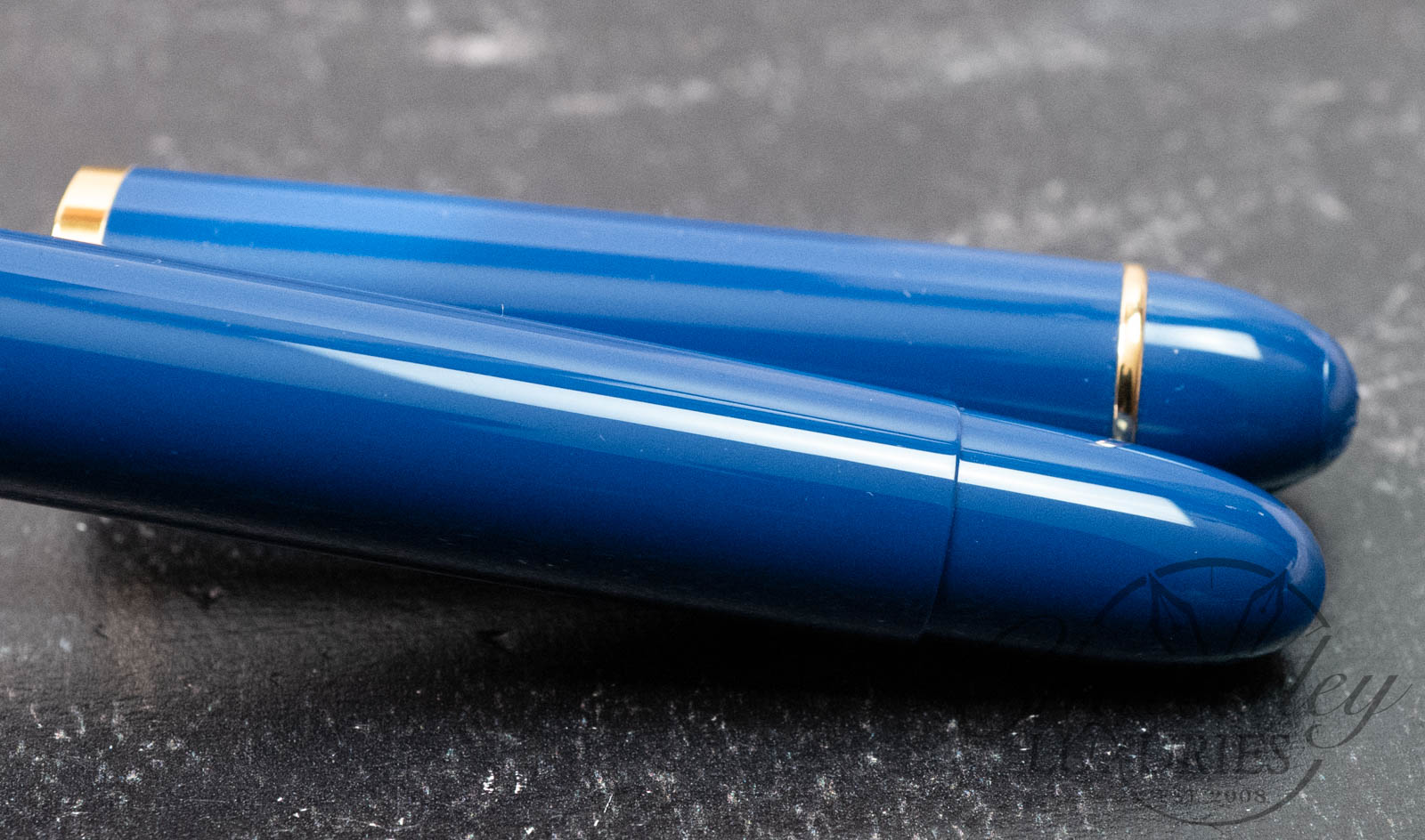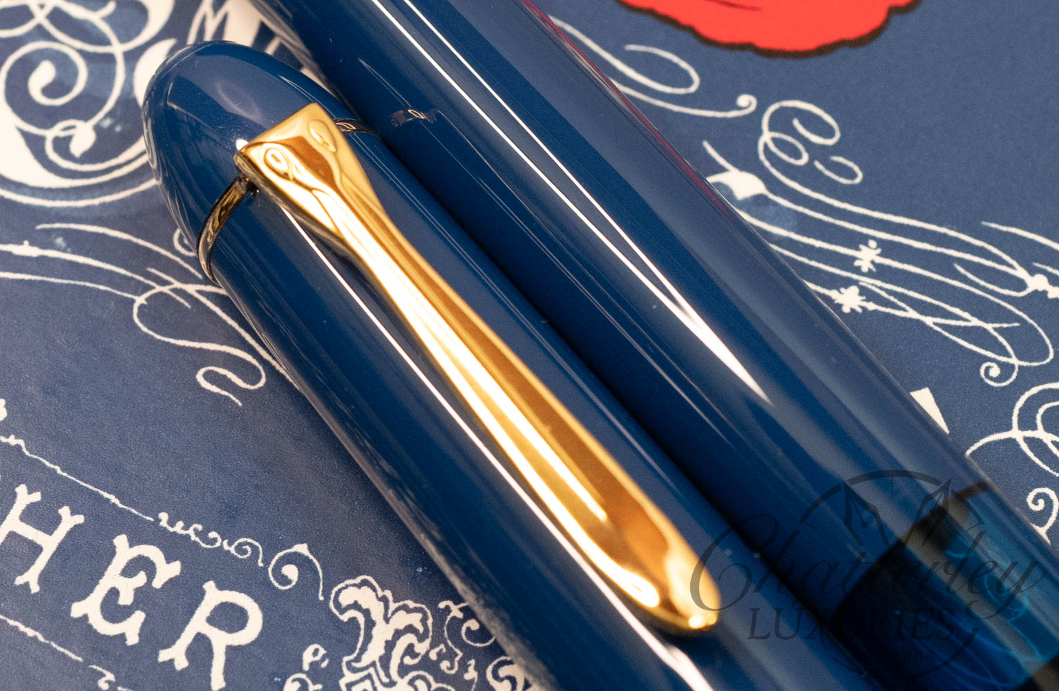This special edition pen features a rich blue finish with a Pelikan logo engraved on the top of the cap. A blue ink window near the grip lets you see how much ink is left without disrupting the pen’s visual appeal. The design is complemented by 14k gold accent rings and a gold-plated stainless steel nib engraved with a special flourish pattern and the Pelikan logo.