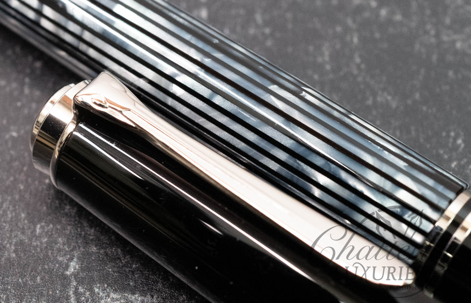 The striking writing instruments are given a special shine by the characteristic double rings and the beak clip typical for Pelikan. The fountain pen also has a 14-carat gold nib, which is completely refined with rhodium, giving it its silver appearance. It ensures a particularly pleasant and soft writing experience.