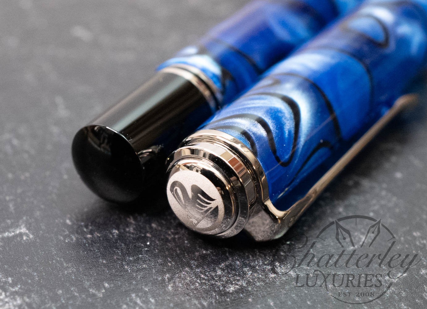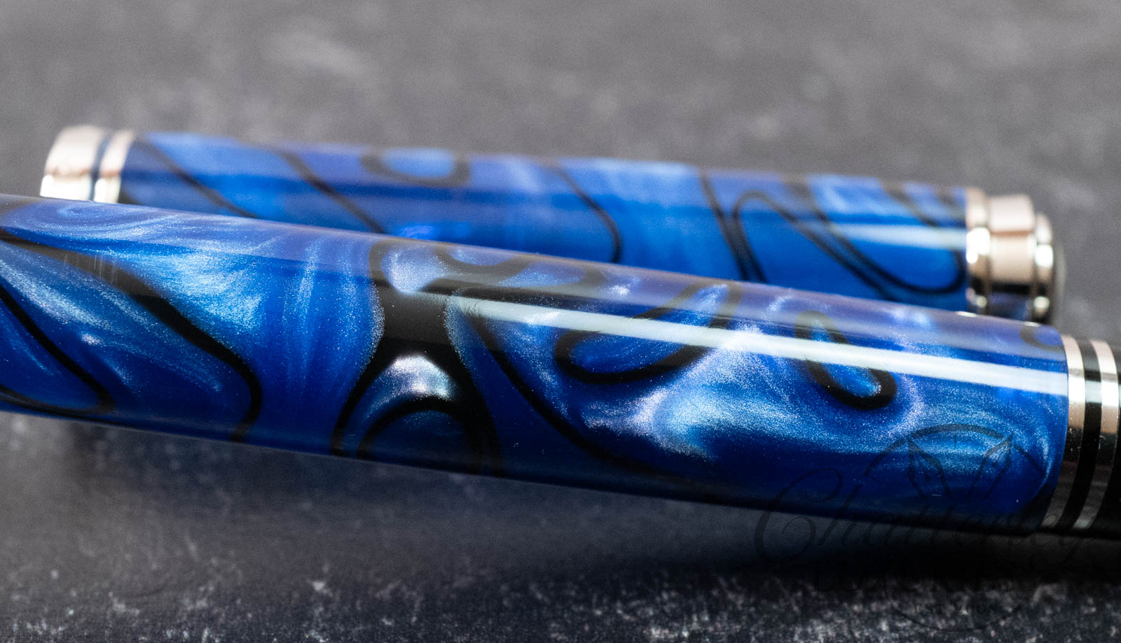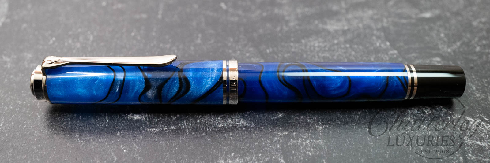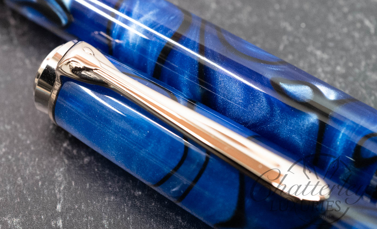 Gaze at the new Series Souverän® 805 Blue Dunes and find yourself fascinated by a world of colors. Contrasts of shadow and light interplay in hues from brilliant azure to deep, midnight blue. The combination of flowing silhouettes display distinct patches of color, all blended harmoniously uniting varying shades of blue. Like the color of sand dunes under a midnight moon, the interplay of blues in each 805 Blue Dunes writing instrument is unique.