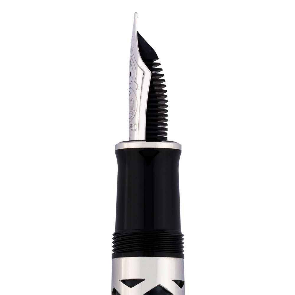 18k/750 gold nib, fully rhodium-plated for a sleek silver finish and smooth, expressive writing
