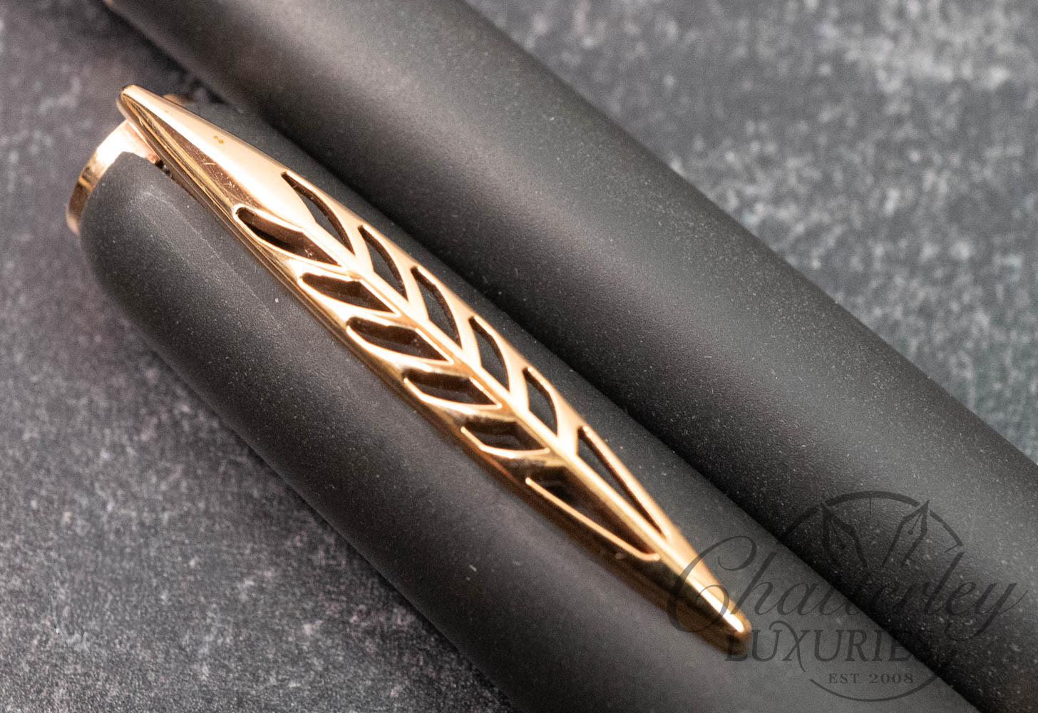 This pen is lovingly used and does not come with a box or papers. It is equipped with a Steel Medium Ruthenium nib and fills via a Cartridge Convertor/Cartridge (included).