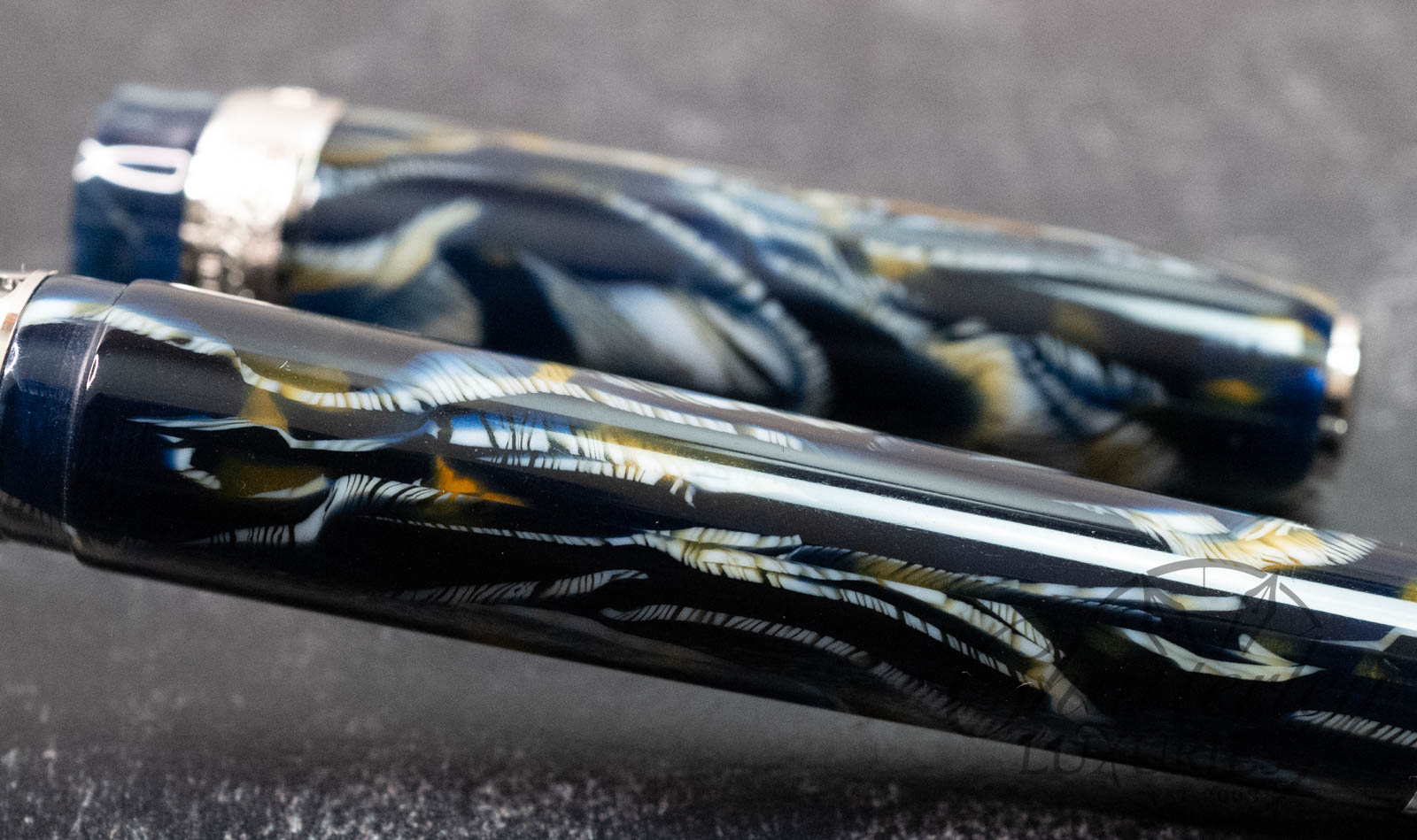 Celluloid and its family exhibit exceptional qualities, such as unparalleled durability, as exemplified by historic advertisements from the twenties, showcasing pens being thrown from planes or into the Grand Canyon to highlight this virtually unbreakable attribute. Moreover, the richness and diversity of colors offered by celluloid remain unmatched by any other material.