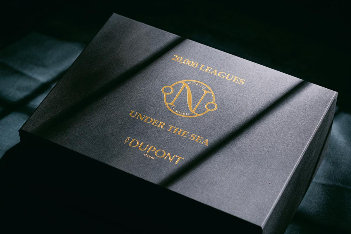 The prestige collection is inspired by Chapter 8 of 20,000 Leagues Under the Sea, and pays tribute to Captain Nemo’s motto: Mobilis in Mobile – “Moving within the moving element,” a poetic reflection of the submarine’s graceful motion through the greatest moving element on Earth: the sea. Available as Collectors Set, Writing Kit or Smoking Kit. Made in the S.T. Dupont workshops in Faverges, France.
