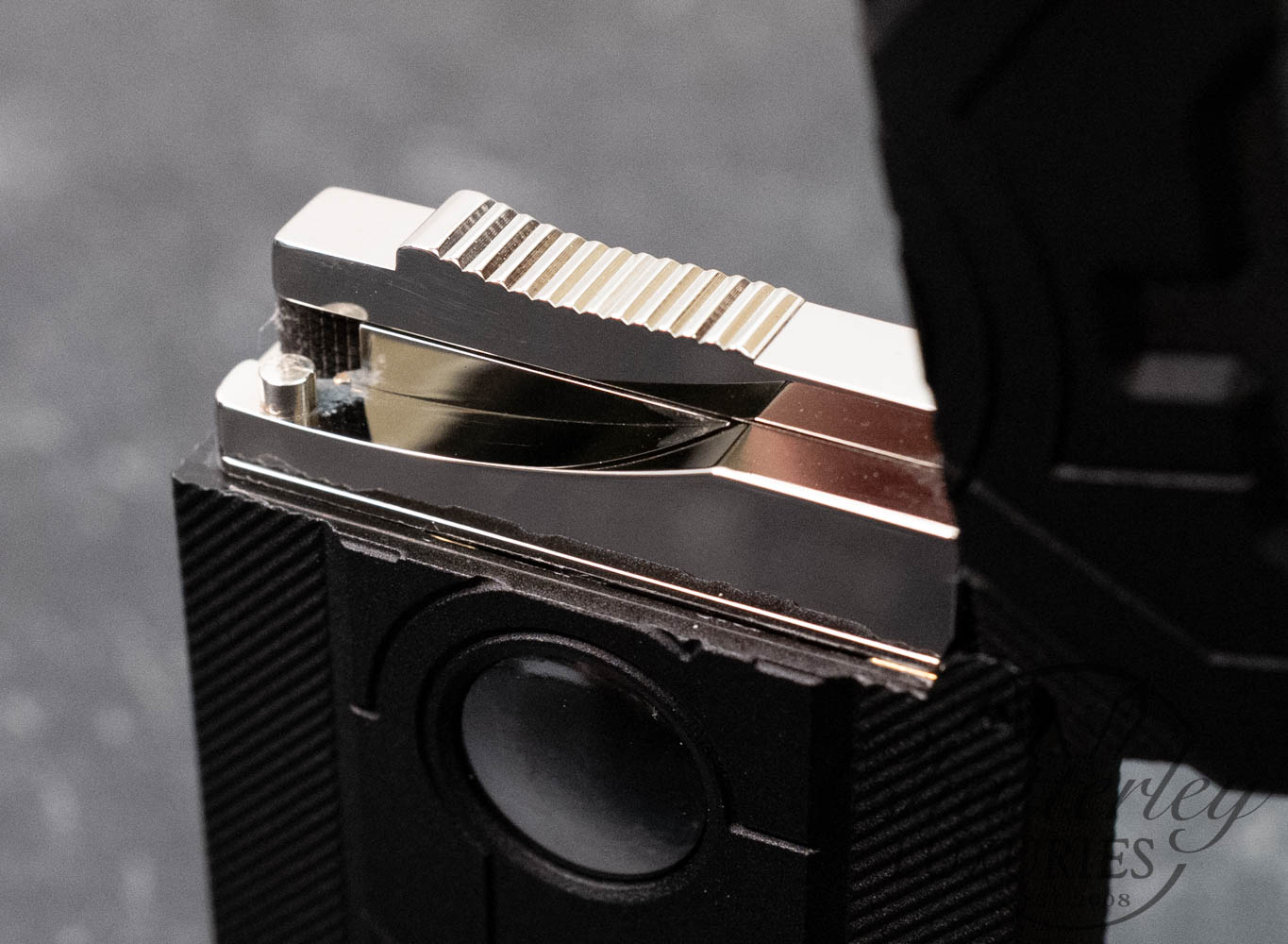 Thanks to Ceramium A.C.T. our lighters and pens weigh 40% less and this breakthrough allows us to ally luxury and quality with the convenience of significantly reduced weight. This limited edition features two lines: The “Prestige” line is composed of a Ligne 2 lighter and Line D writing instruments in Ceramium A.C.T., finished with palladium and embellished with a hematite cabochon.
