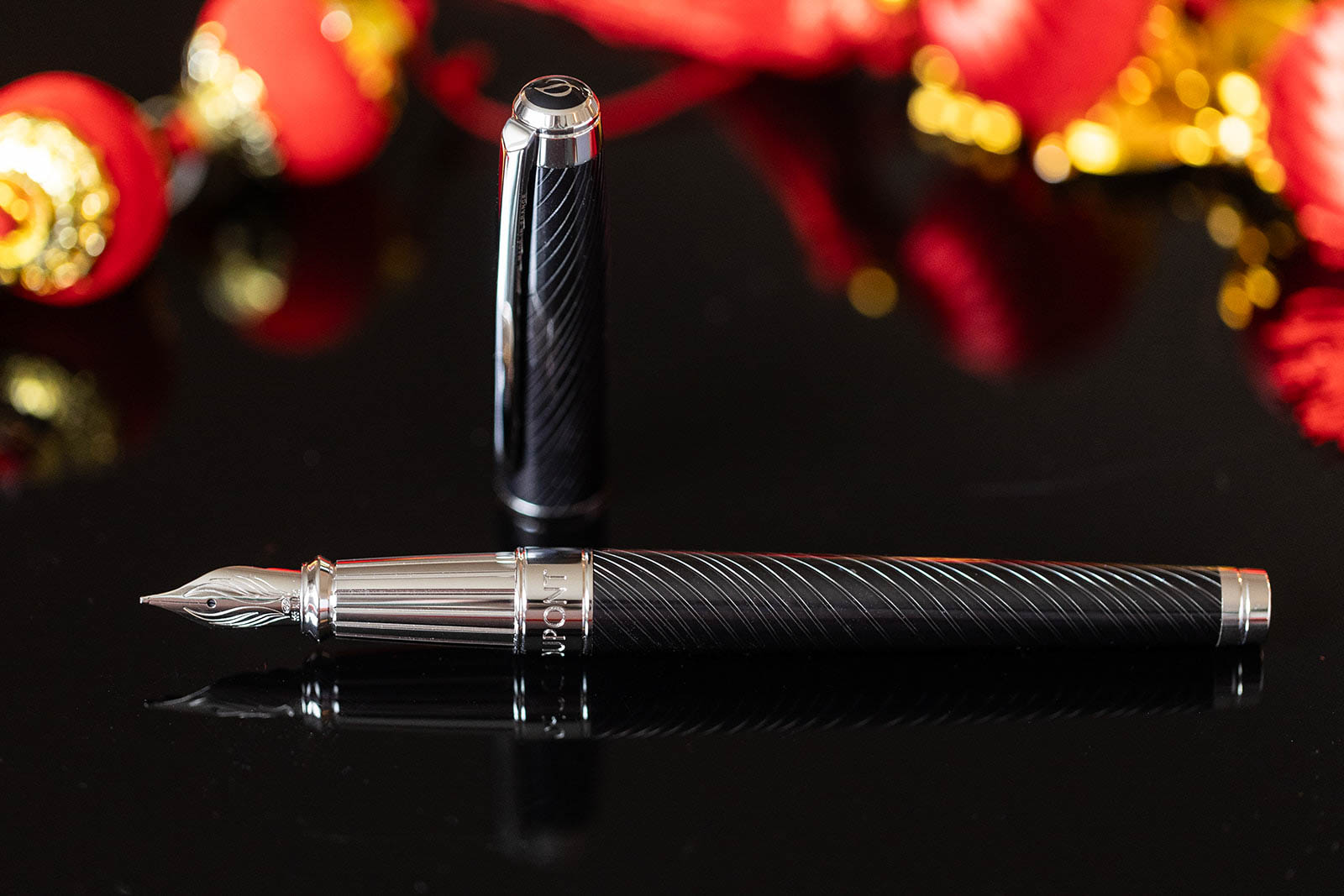 S.T. Dupont Line D Eternity Large Mane Guilloche Black Fountain Pen