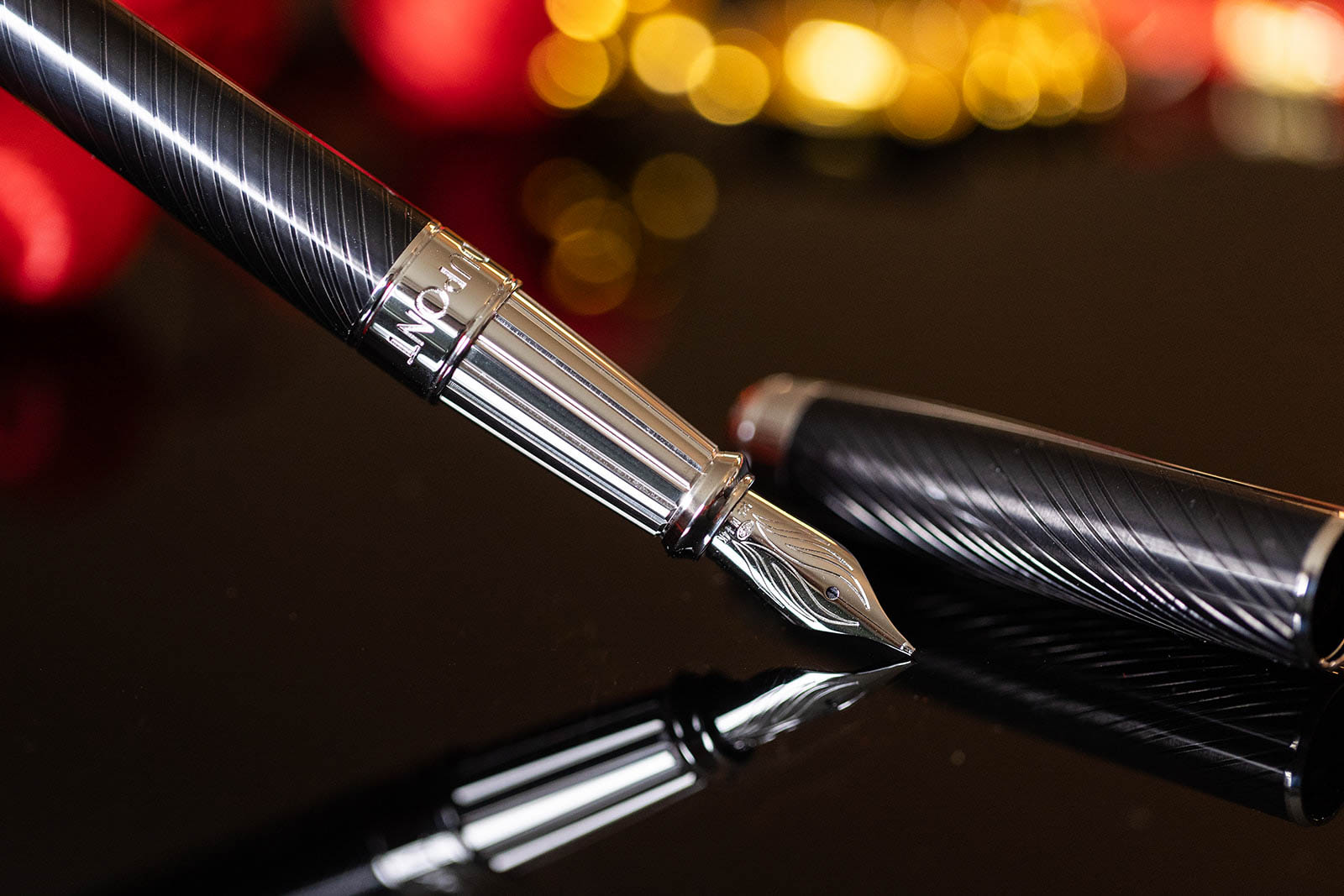 - Line D Eternity fountain pen featuring: 14kt gold “angel wing” nib, articulated sword clip, lacquered “D” logo on cap that is postable with signature “click” closure.