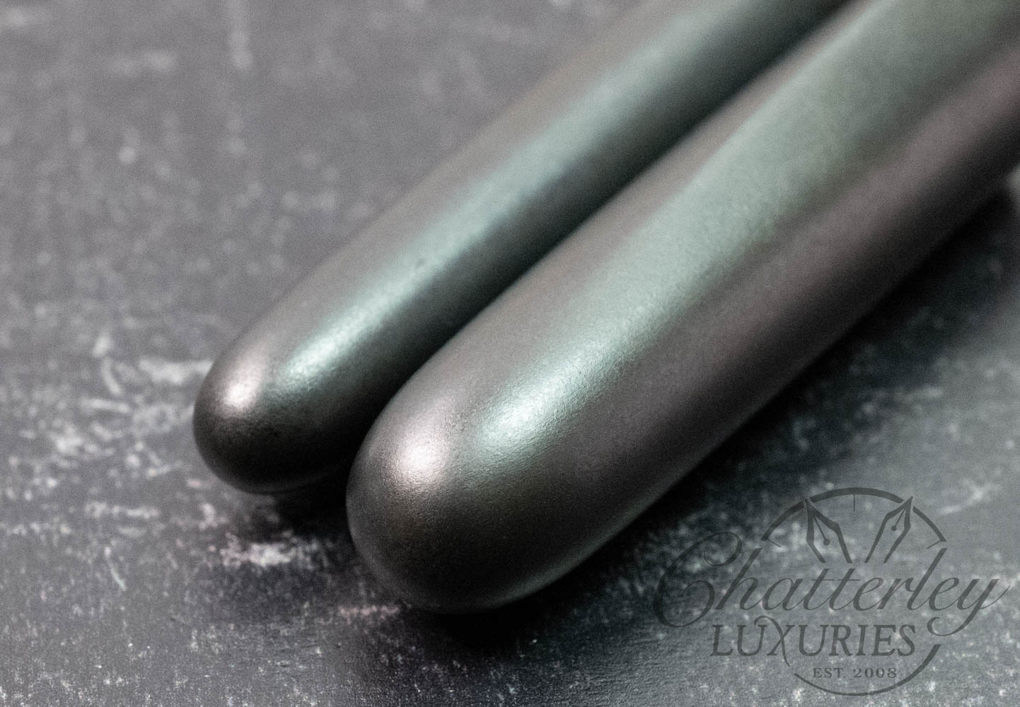 The NAWATE Fountain Pen Kuroginhaku collection presents Sei ( 惺) in a lustrous glossy finish and Ei ( 影) in a refined matte finish. Layers of Urushi lacquer are brushed in irregular strokes, upon which Kuroginhaku—black silver foil—is delicately and purposefully scattered.