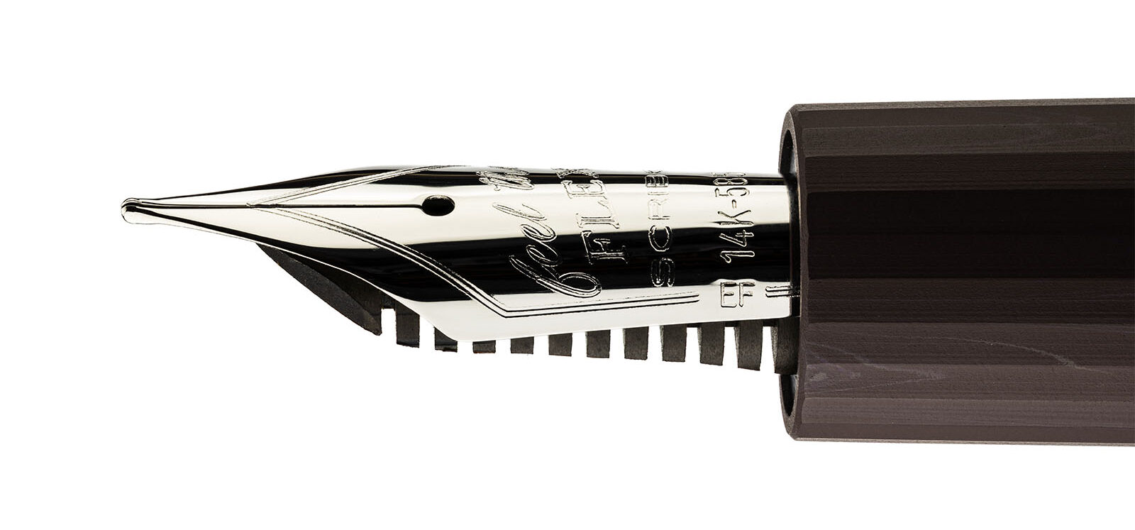 • NIB: Exclusive Scribo Nib – 18k Gold in available sizes: Extra Extra Fine, Extra Fine, Fine, Medium, Broad, BB, BBB and Stub or 14k Gold Flex in available sizes: Extra Fine, Fine, Medium and Broad