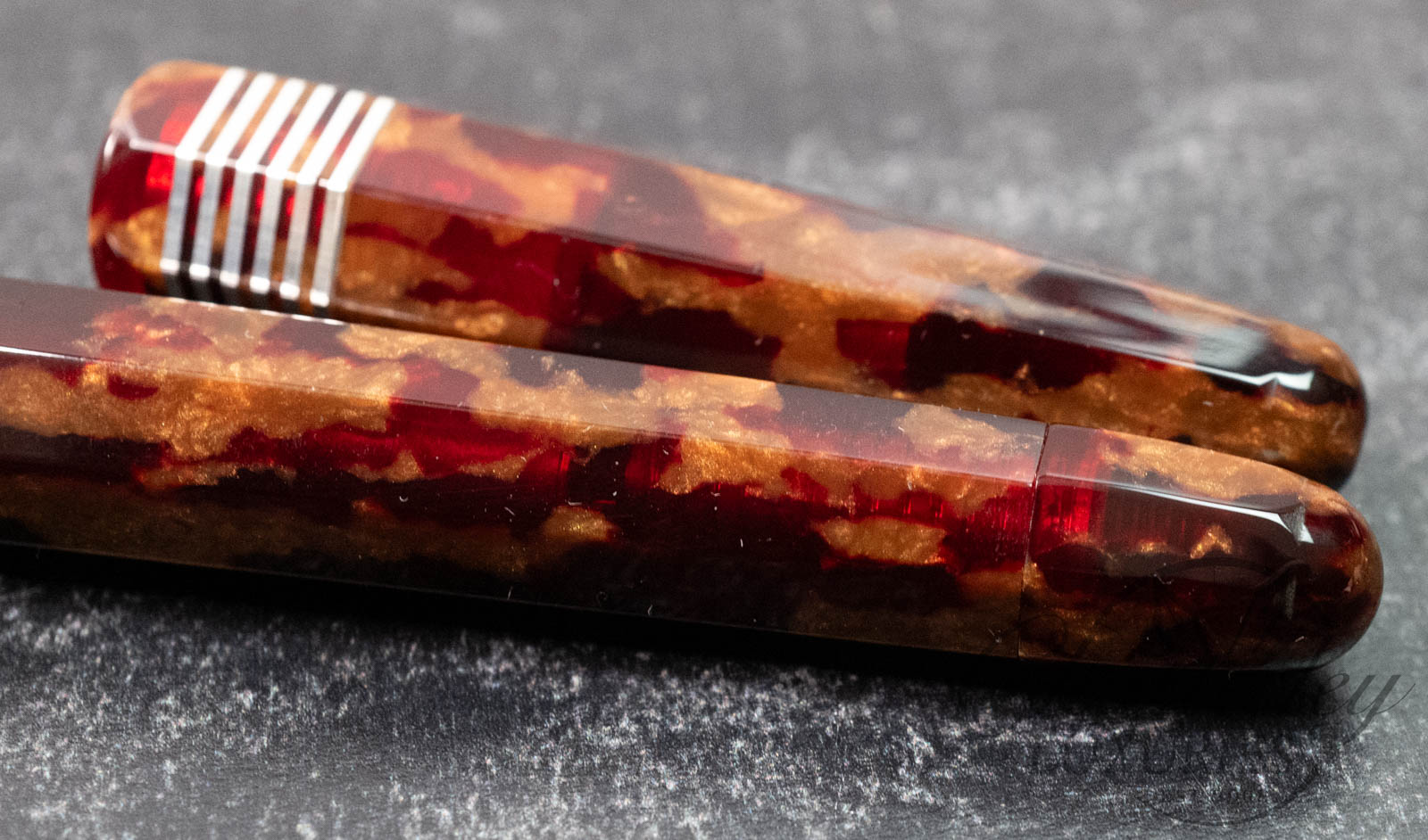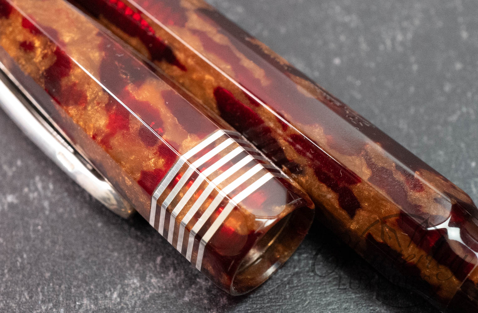 Stipula Etruria Faceted Limited Edition fountain pen is handcrafted by talented and skilled Florentine artisans that utilize the same Renaissance crafting techniques passed down for generations. Featuring a gorgeous, red and brown resin material, both the front section and the cap match the barrel material. The unique part of the design is its elegant oval silhouette that is enhanced by the 8-faceted barrel and cap.