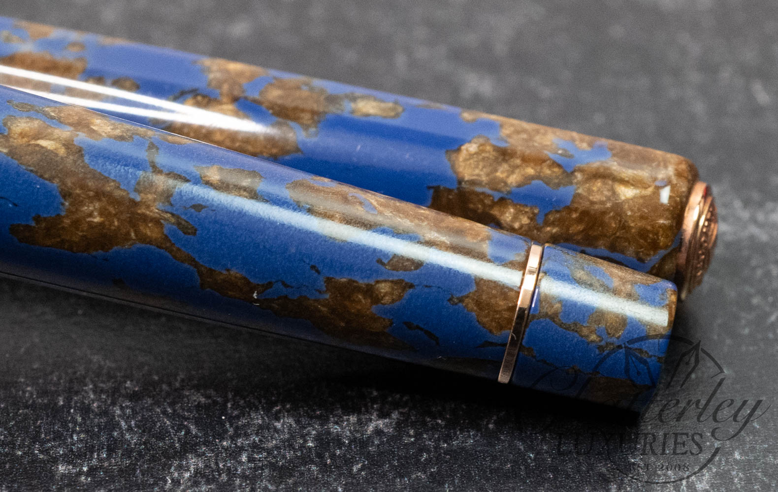 These pens fill via Visconti’s ever popular high capacity Power Filler and have 18k gold nibs. Packing is also specialized for this pen in blue.