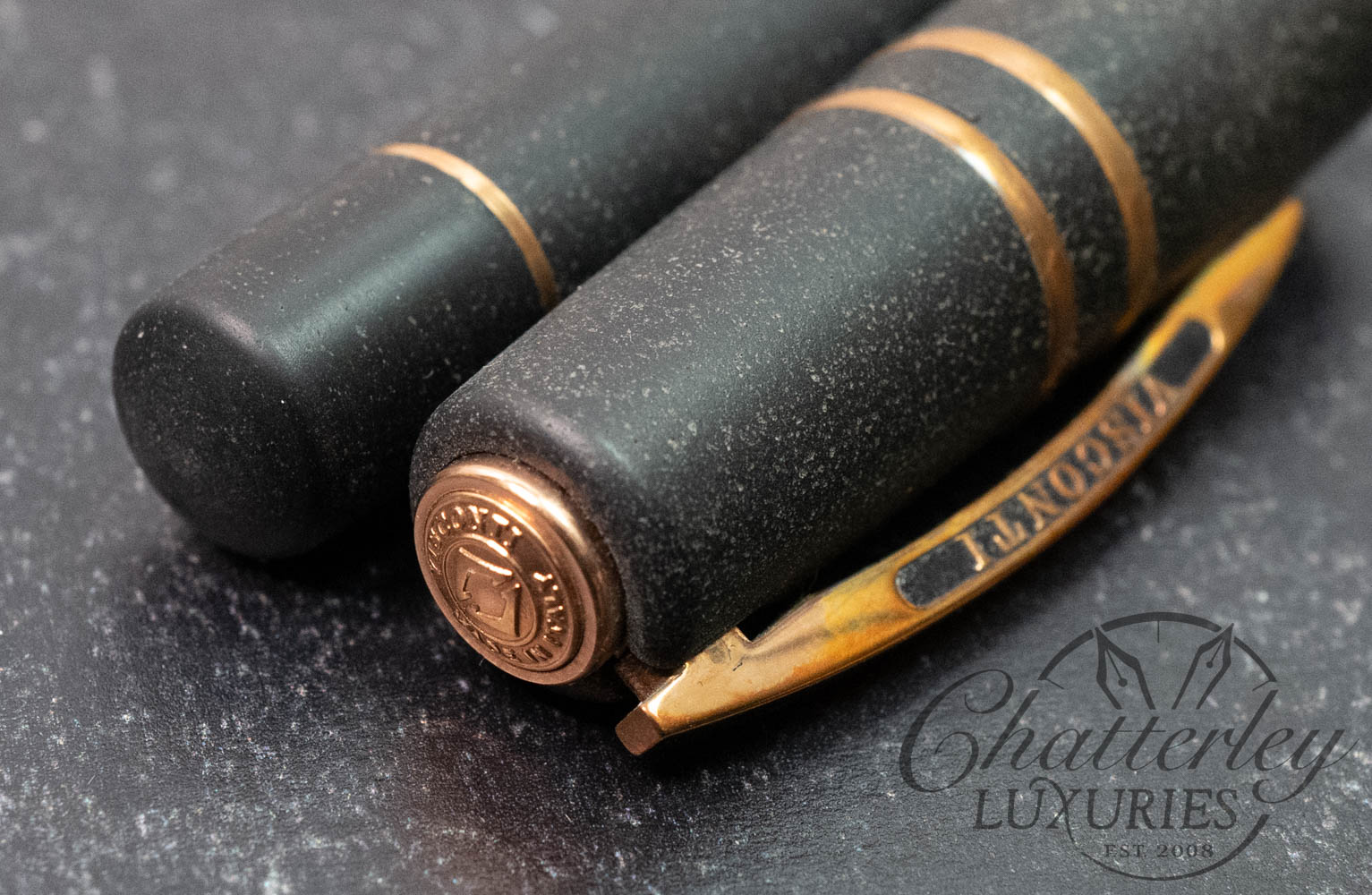 The pen is made from a material that is as unique as the world around us: lava from the Etna volcano. Lava has many characteristics that make it very unique in the manufacturing of writing instruments. Visconti has successfully produced a material containing over 50% pure basaltic lava, catalyzed together with resin in a formula that is patented and obviously kept secret. The extraordinary characteristics of basaltic lava practically transform it into a material perfectly fit to writing instruments.
