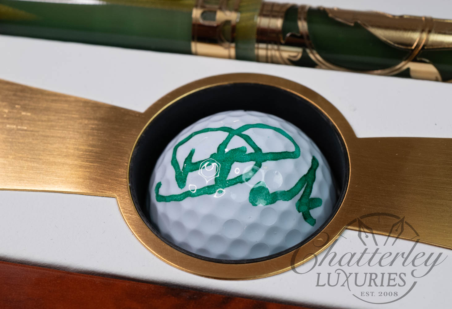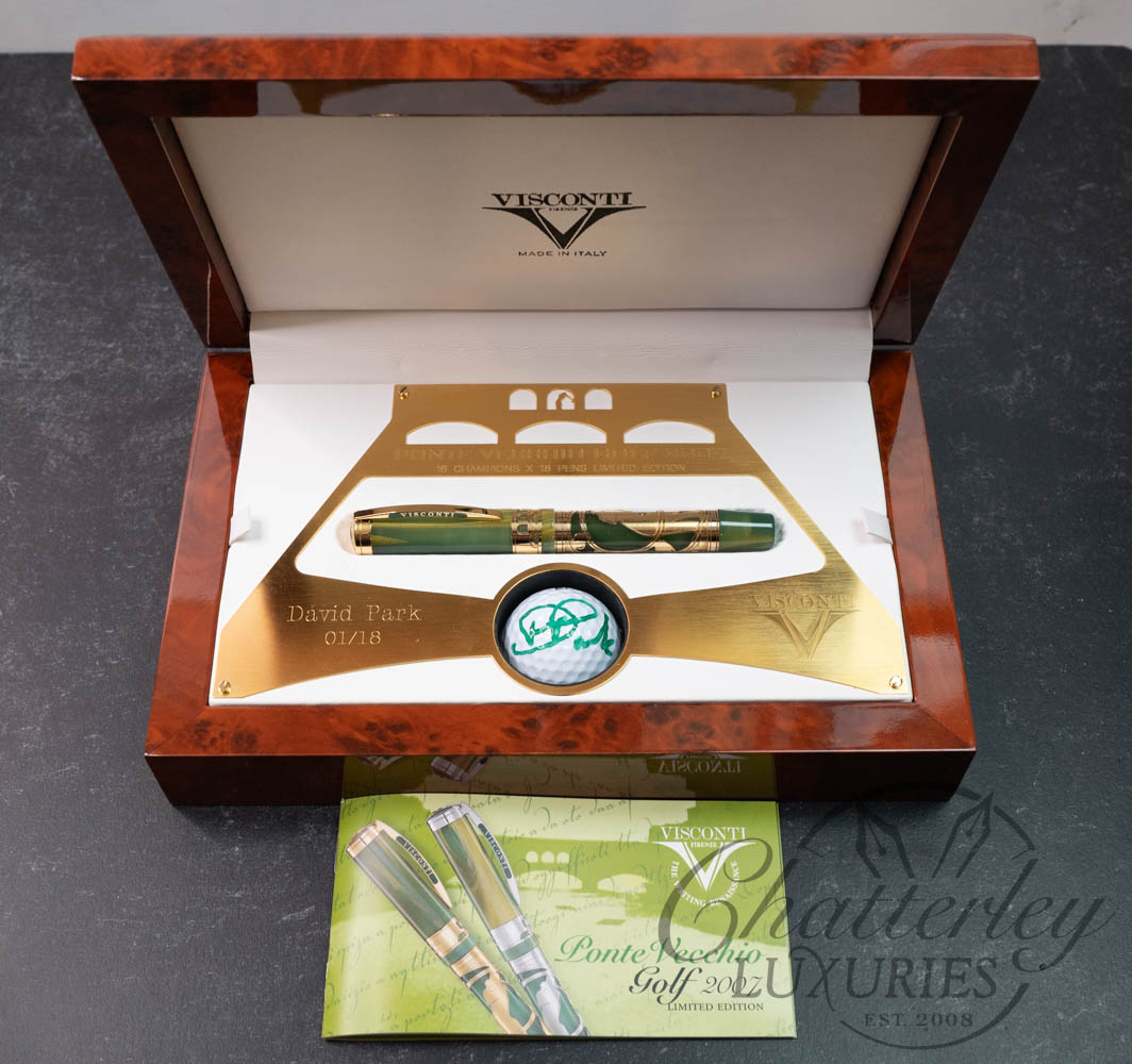 The pen also includes a signed gold ball by professional Welsh golfer David Park.