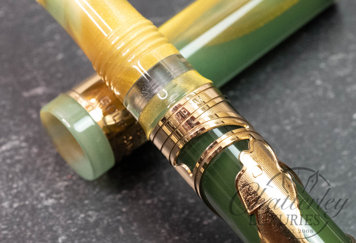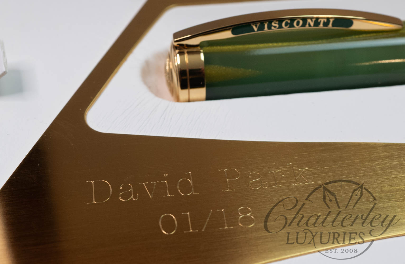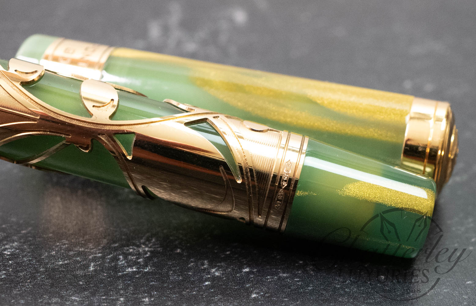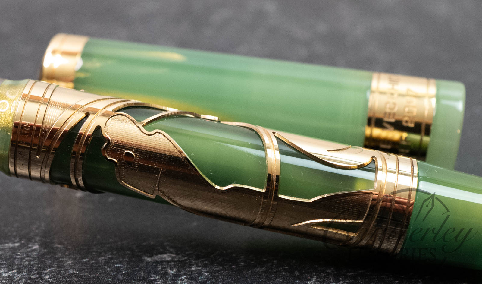 This limited edition pen is available with vermeil trim. The pen is made of green resin with gold dust and stands out for the same elegance, culture and vision of design that unites the Renaissance city, the art of writing and the sport of golf. But golf is the star of this pen, which sports a perforated relief engraving of a golfer’s swing. On the cap band is an image of an arch from Florence’s most famous bridge and the name of the pen. Visconti’s hallmark arch-shaped clip stands out on the cap.