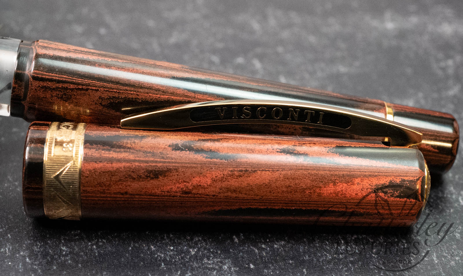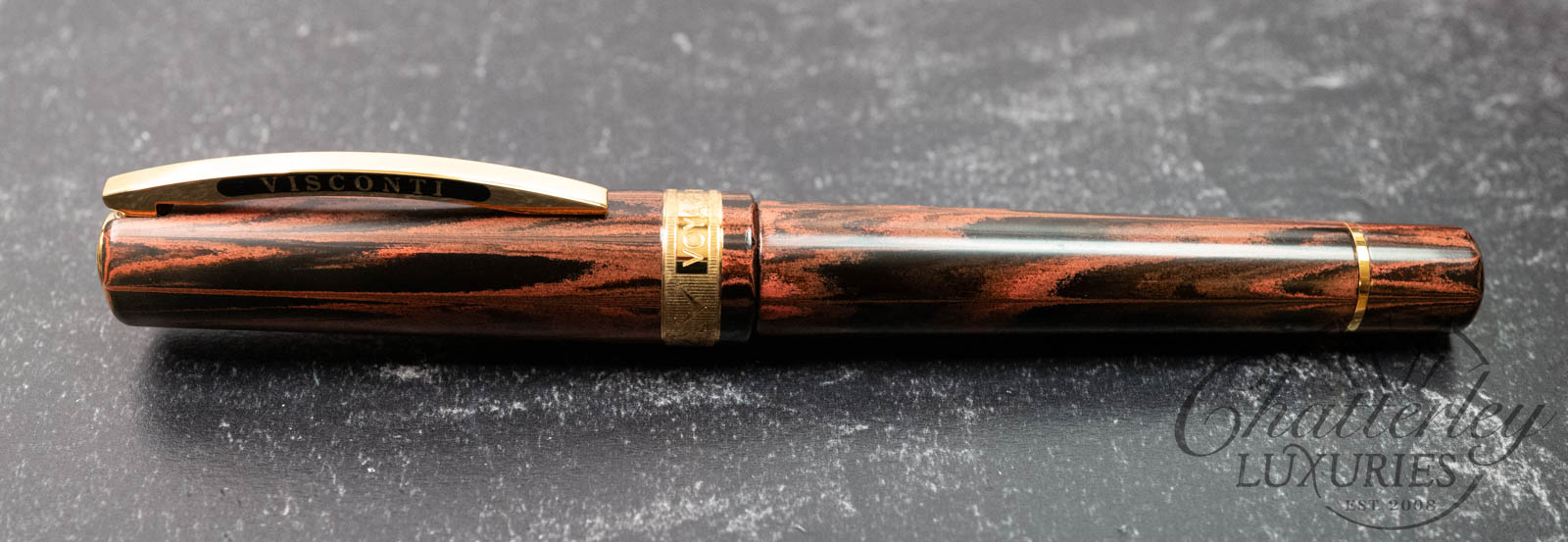 This pen is lovingly used and does not come with a box or papers. It is equipped with an 18k Fine Nib and fills via Visconti’s Double Reservoir Power Filler System.