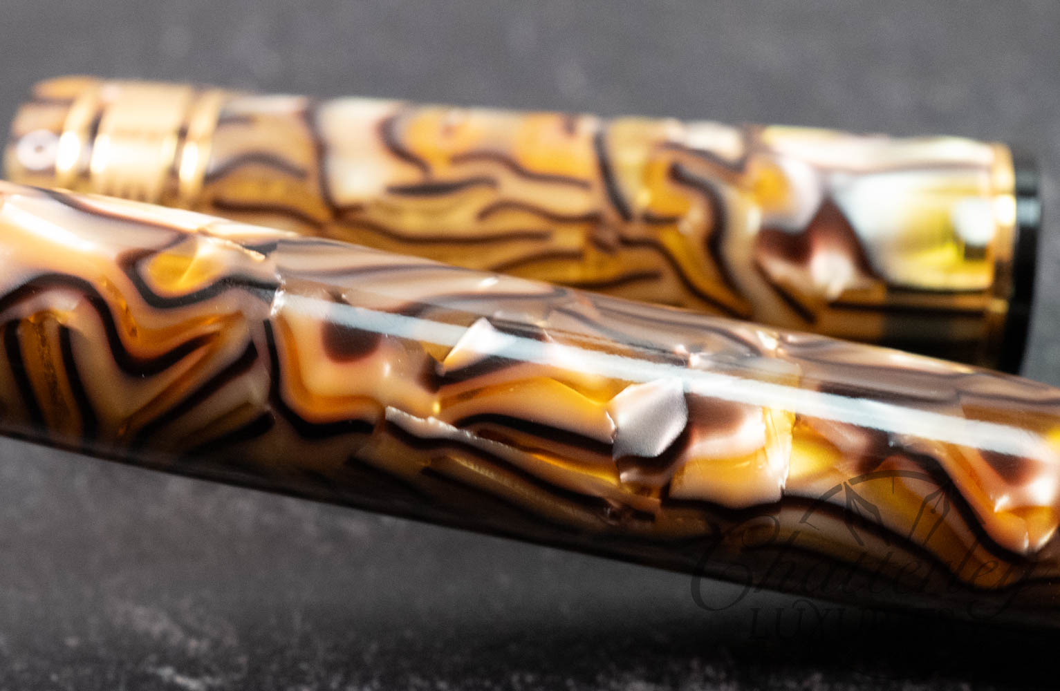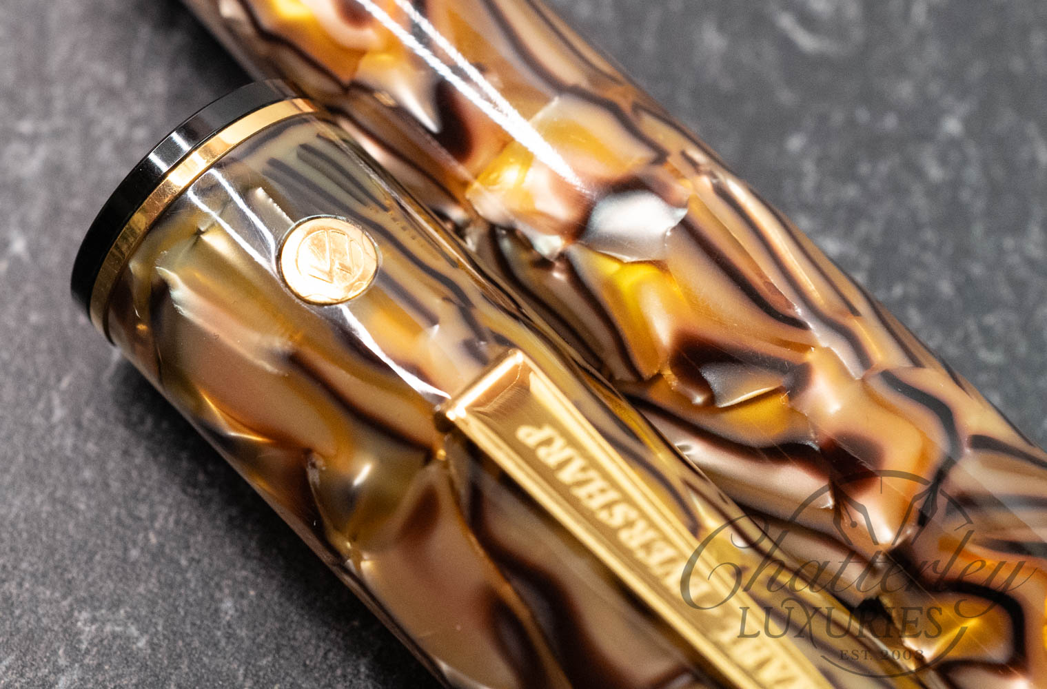 Back to the future. The WAHL-EVERSHARP Oversized Decoband Cracked Ice Acetate Cellulose . A TRUE piece of art and 14kt gold nib and gold trim, sets a new standard for beauty and elegance. This pen recaptures the classic design first introduced in 1929. Only now, it’s bigger and better.