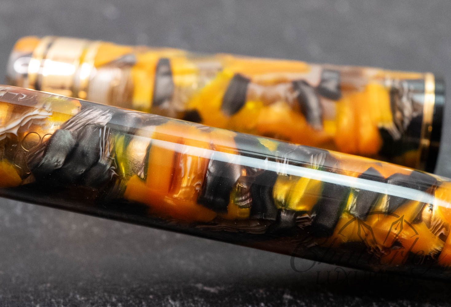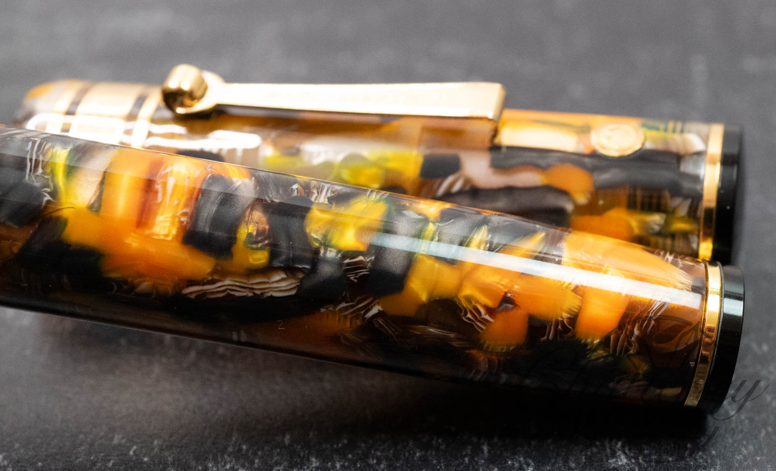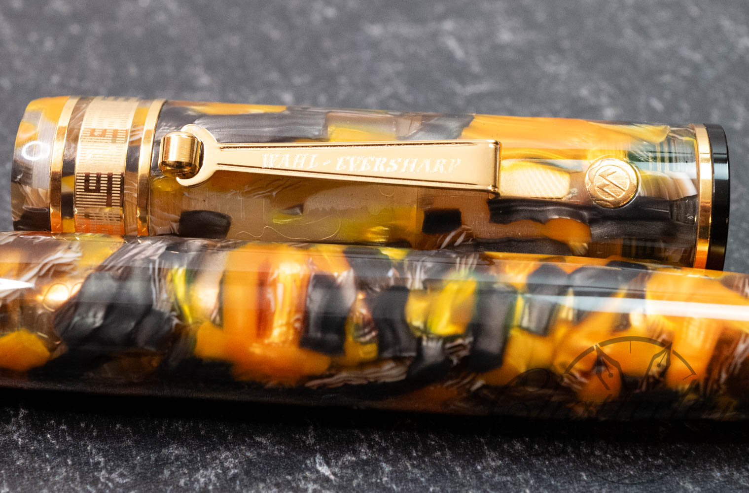 Back to the future. The WAHL-EVERSHARP Oversized Decoband Tiger Eyes Acetate Cellulose. A TRUE piece of art and 14kt gold nib and gold trim, sets a new standard for beauty and elegance. This pen recaptures the classic design first introduced in 1929. Only now, it’s bigger and better.