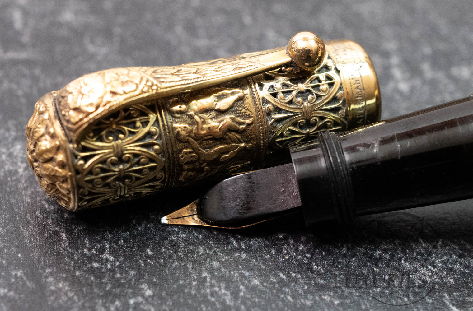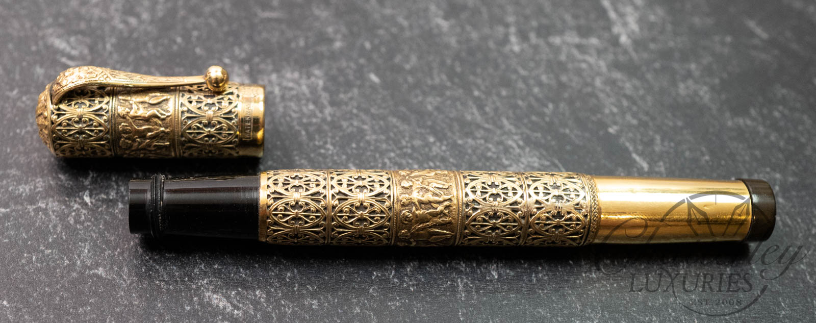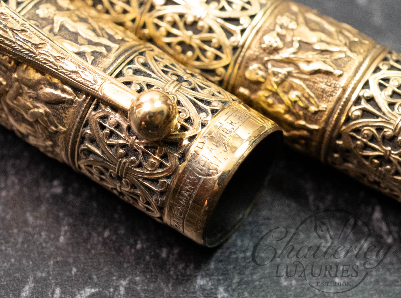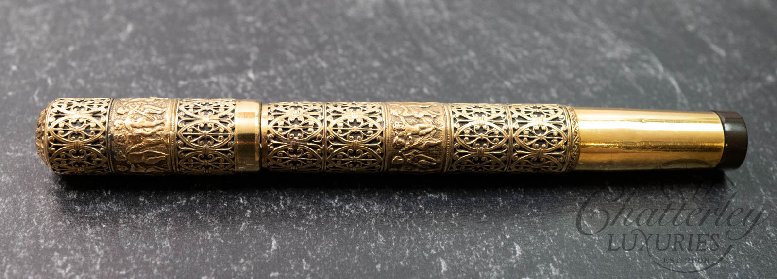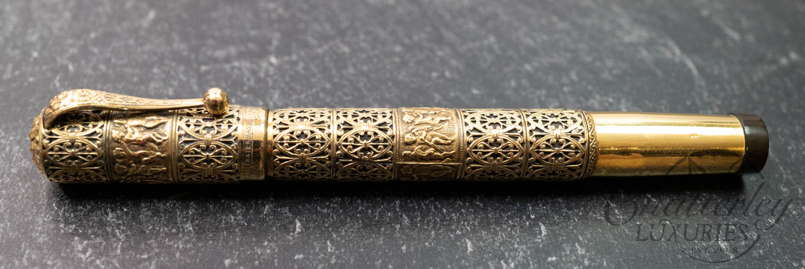 Waterman 42 Italian Vintage “Putti” on Open Filigree Overlay 18k Rolled-Gold Safety Fountain Pen