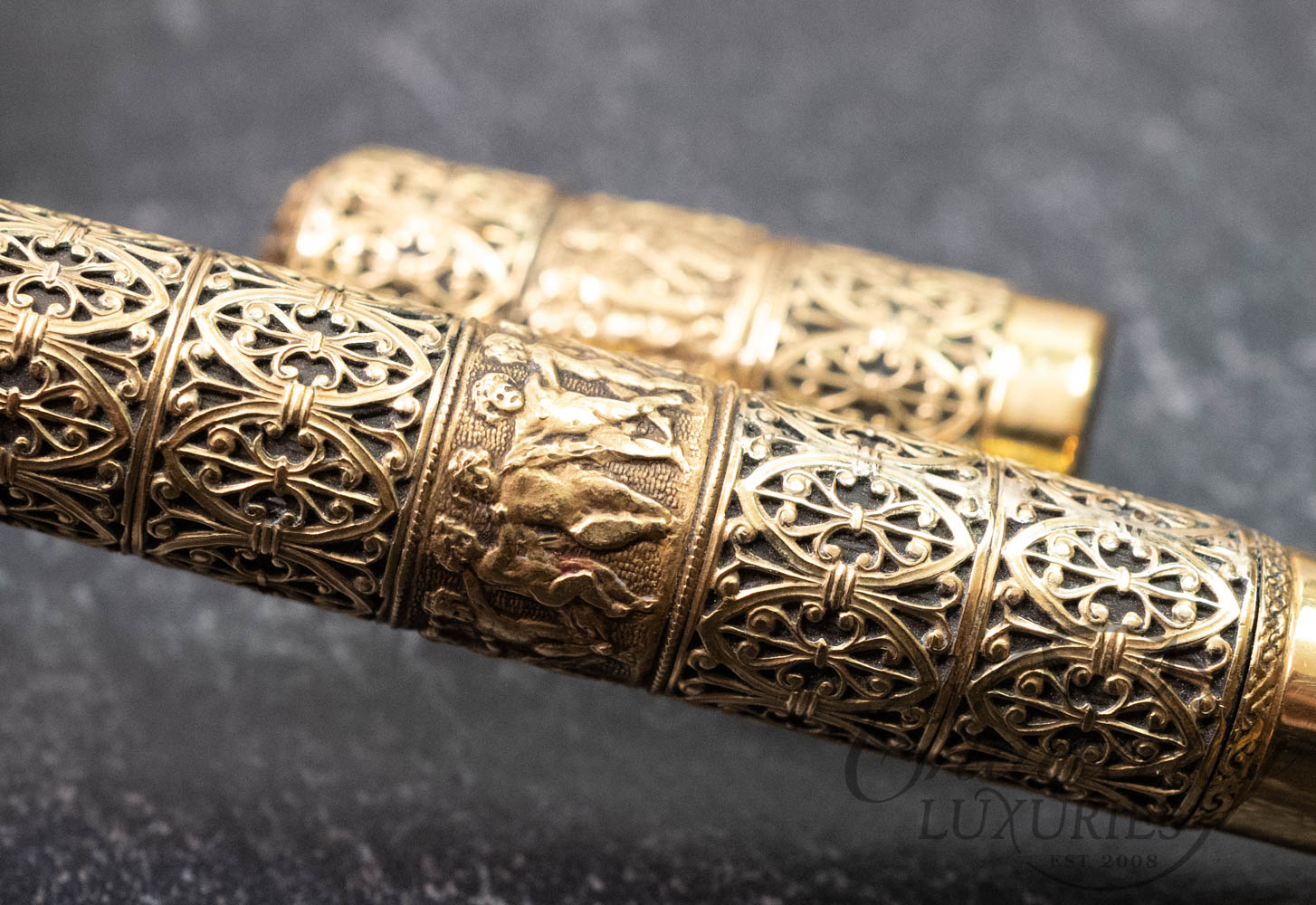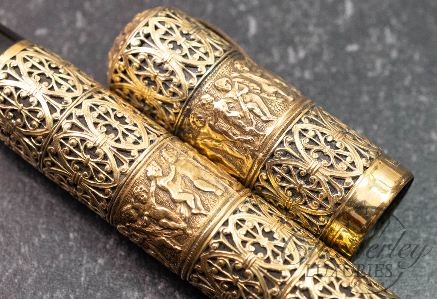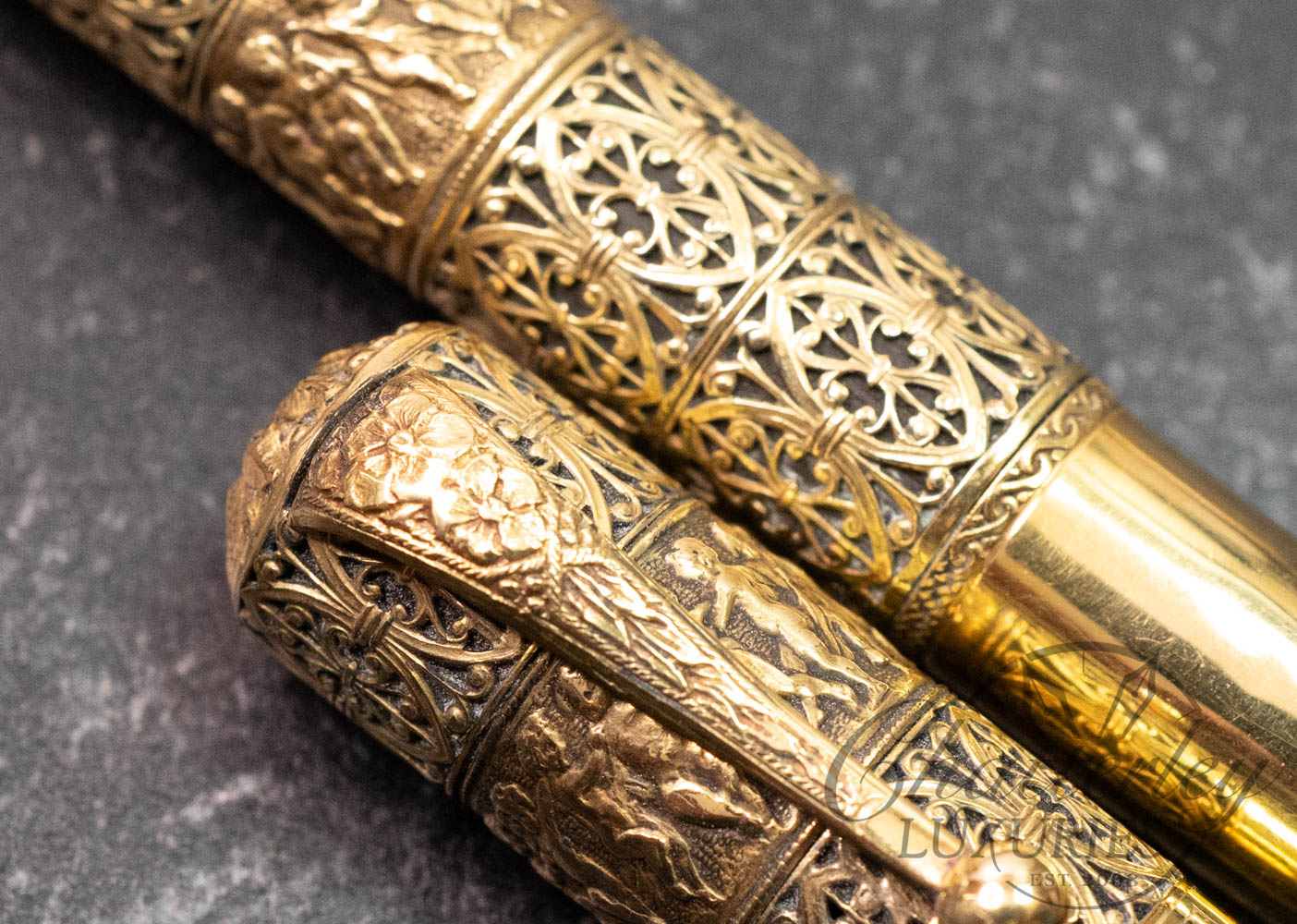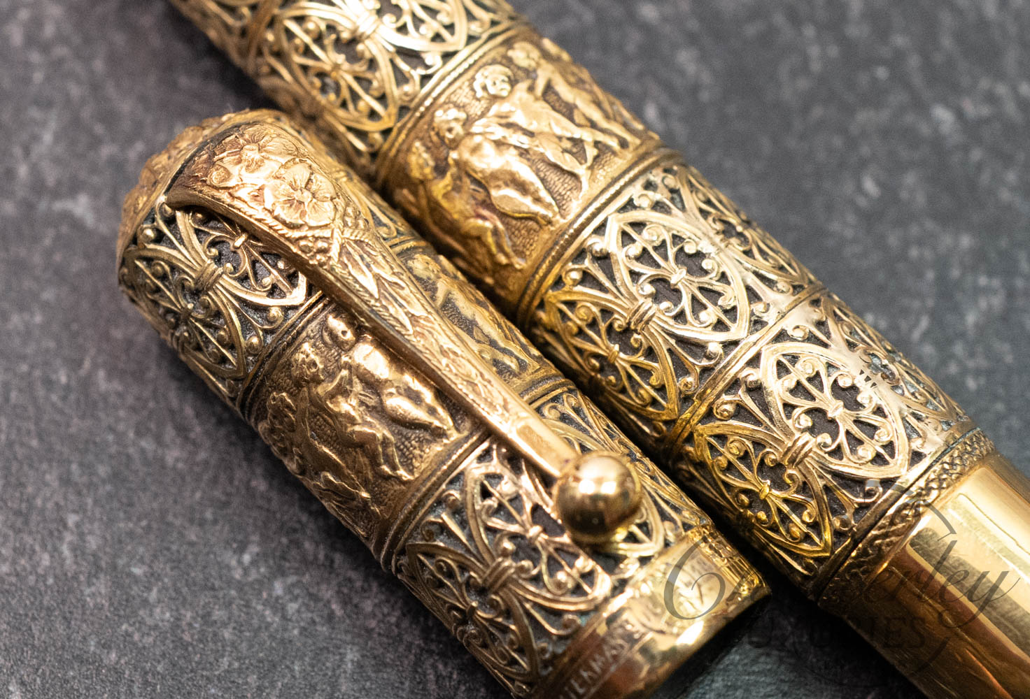 Waterman 42 Italian Vintage “Putti” on Open Filigree Overlay 18k Rolled-Gold Safety Fountain Pen