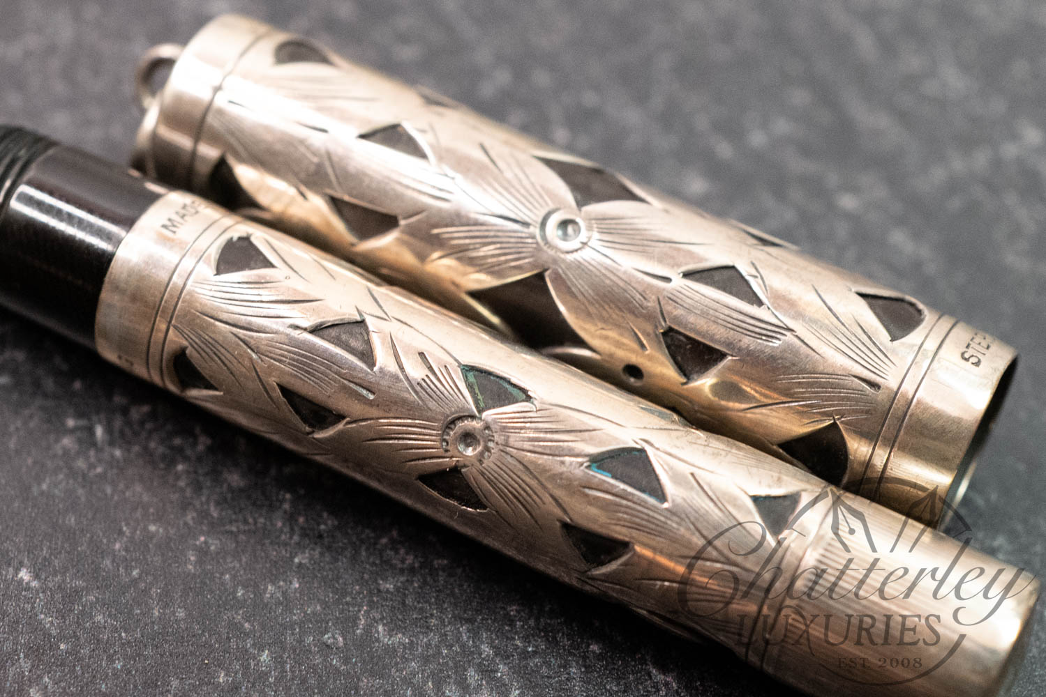 Waterman 452 1/2 V Vintage Ringtop Sterling Silver “Basketweave” Filigree Overlay on BHR Fountain Pen
