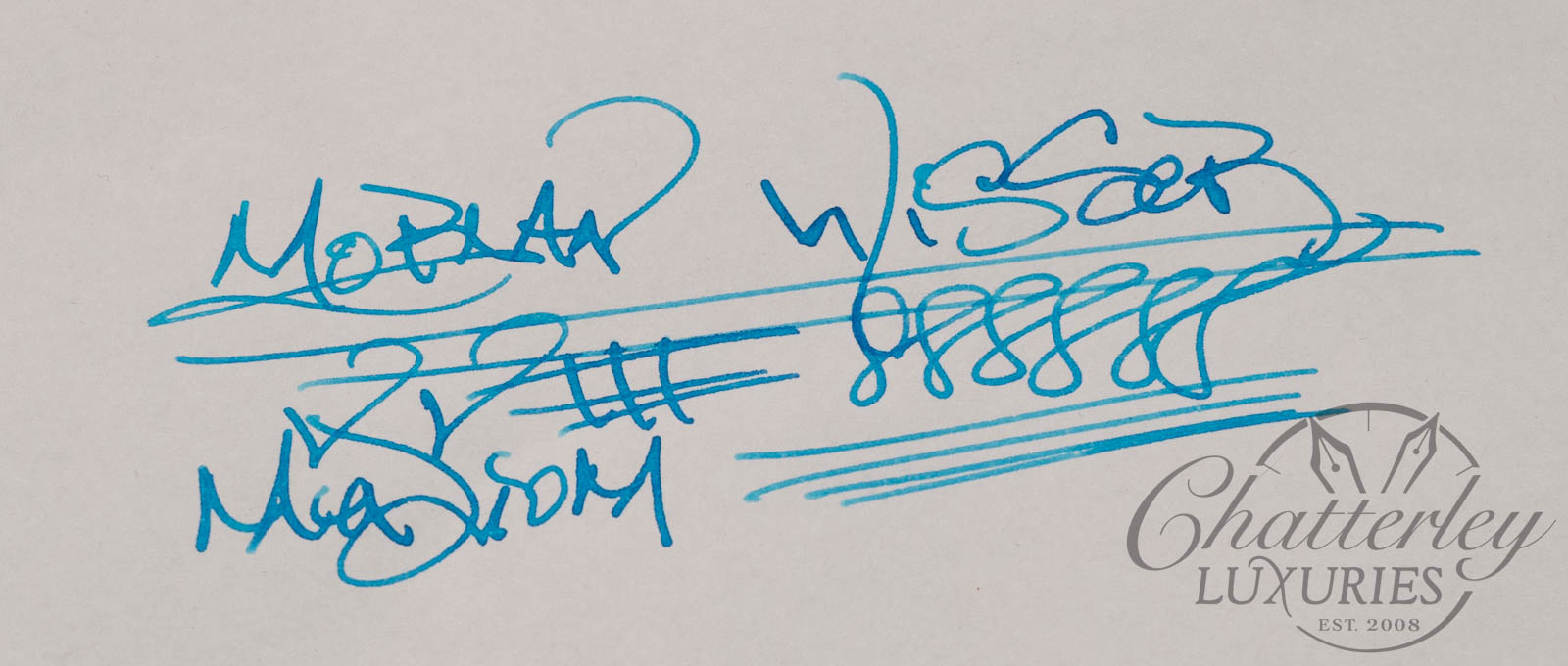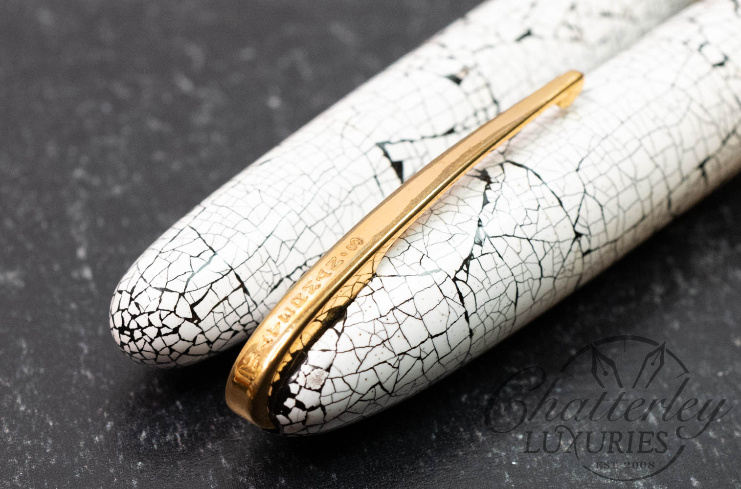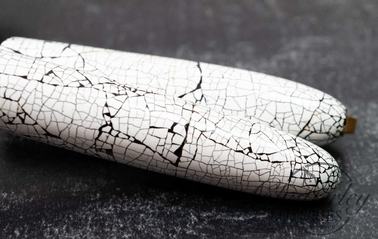 This pen is lovingly used and does not come with a box or papers. It is a vintage Waterman fountain pen that has undergone an incredible transformation. Hand-painted Urushi with quail egg, by artist Morgan Wisser. It is equipped with a Waterman’s #2 18k Medium nib and fills via Eye-dropper. (Writing Sample at the bottom)