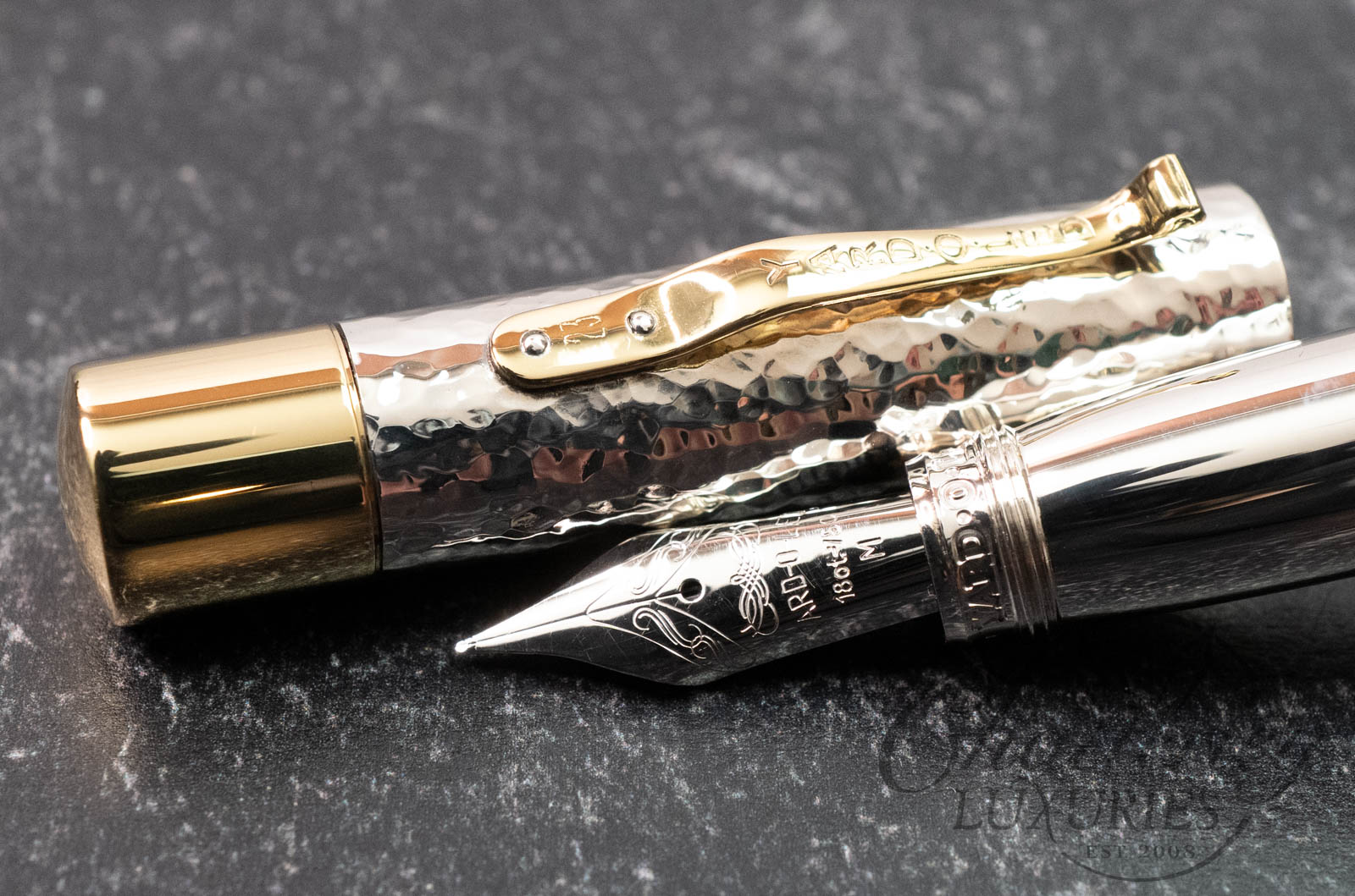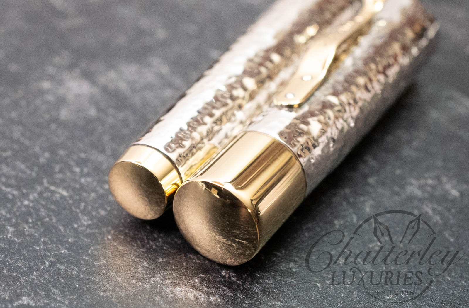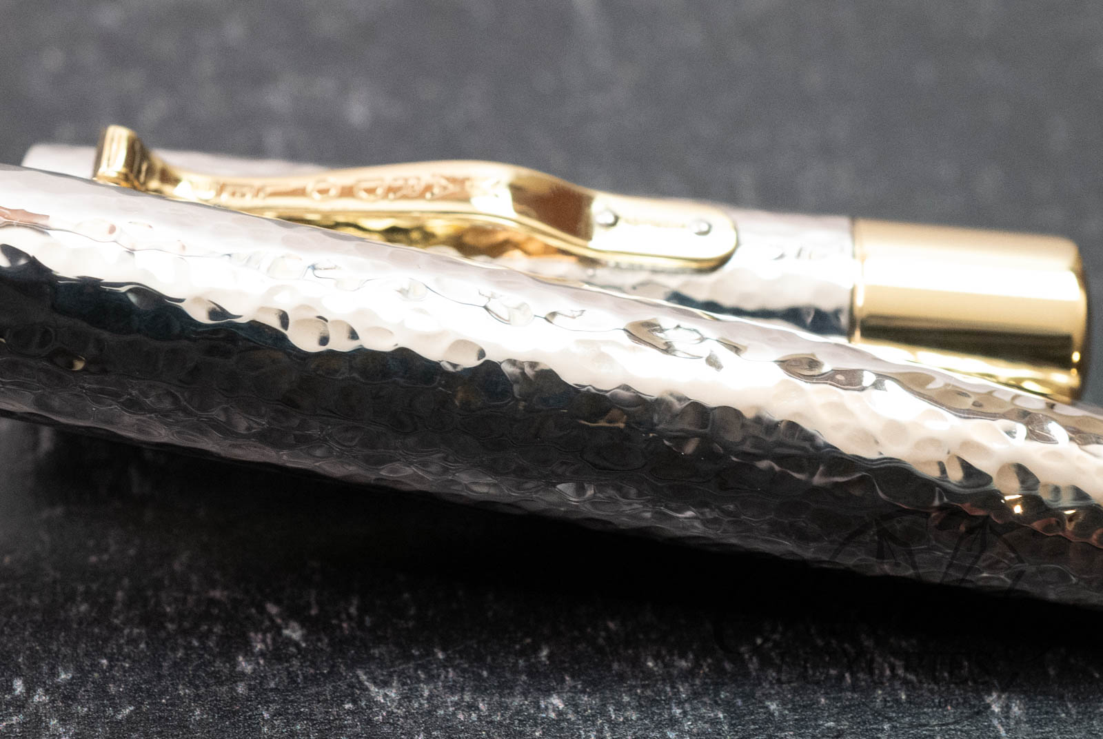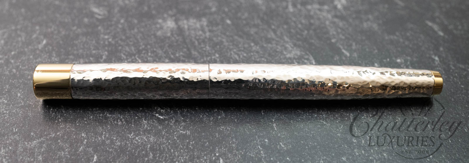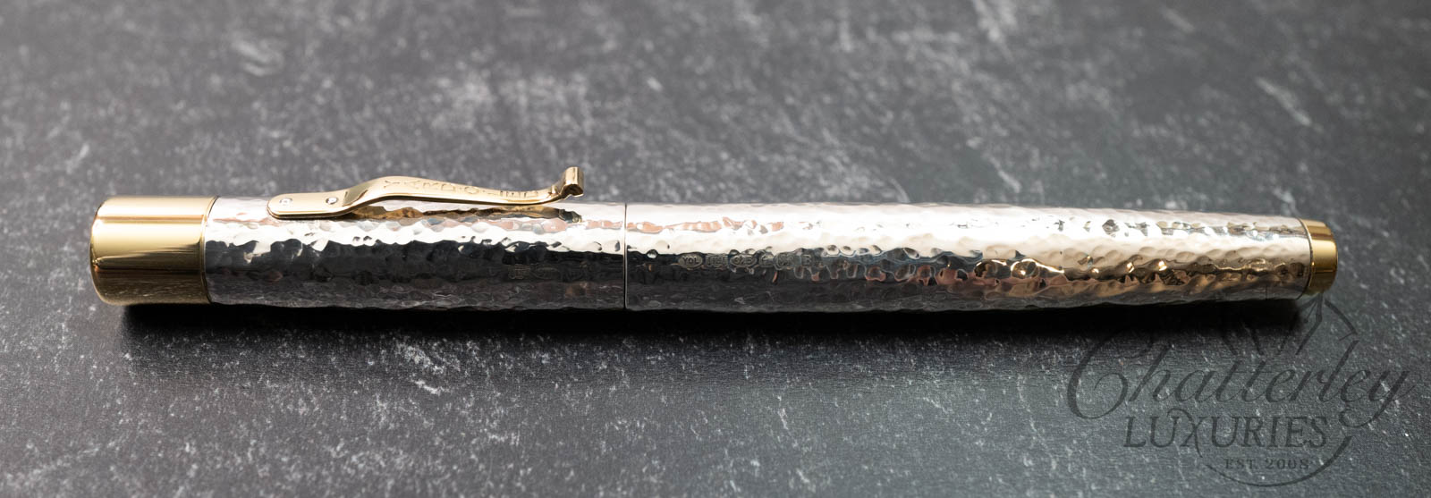 Defined by its distinctive hand-hammered (Martelé) finish, the Grand Martelé celebrates the artistry and heritage of traditional silver craftsmanship. Each sterling silver cap and barrel is individually worked by hand over many hours with a planishing hammer , creating a unique surface that reflects light with subtle variation and depth, ensuring no two pens are exactly alike.
